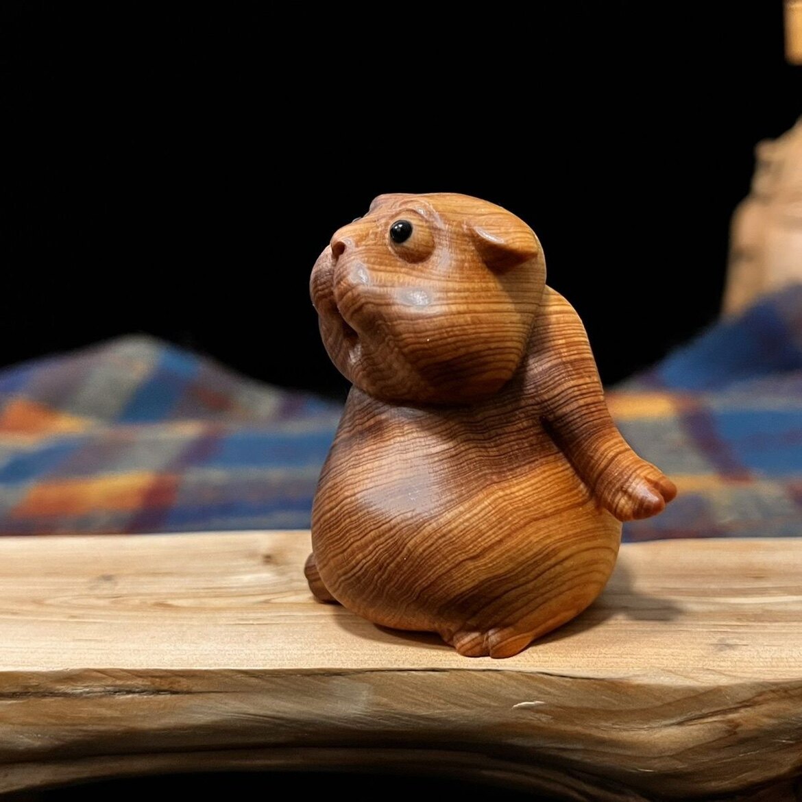 New Taihang Cliff Cypress Wood Black Aggregate Cute Puppy Handlebar Pieces Wood Carvings Solid Wood Milk Fragrant Zodiac Dog Hawks No Lacquer-Taobao