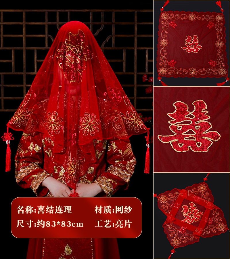 Silk embroidered red cover head (embroidered double joy) silk embroidered red cover head (hole nestle) silk embroidered red cover head (complex flower round-happy) silk embroidered red cover head (sparkling round joy)