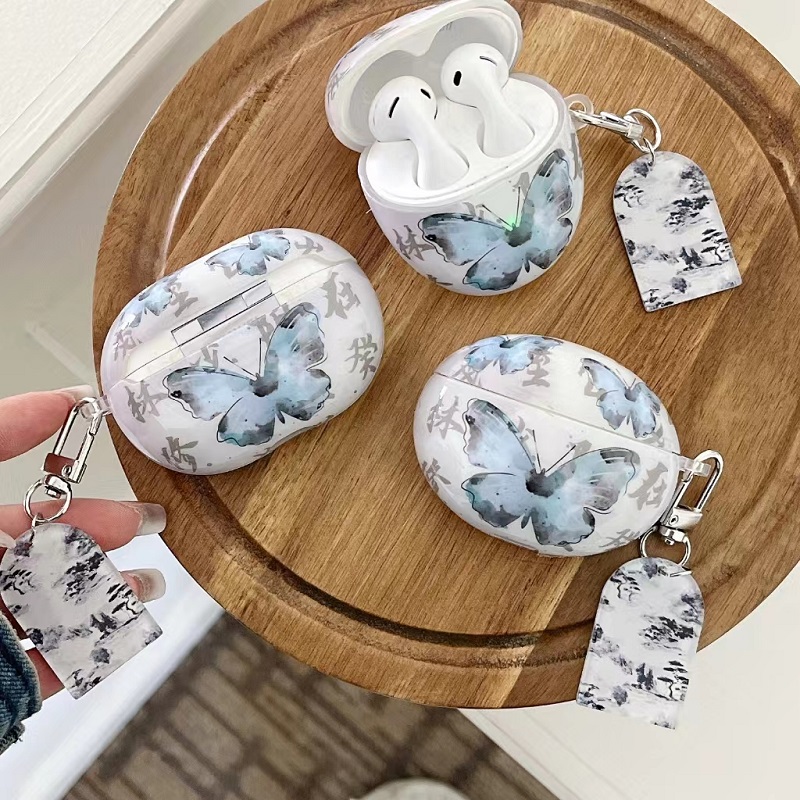 Green water ink butterfly applicable Huawei headphone protective sleeve freebuds4 protection shell freebrudspro Bluetooth headphone shell freebud4i sleeve buds3 idea