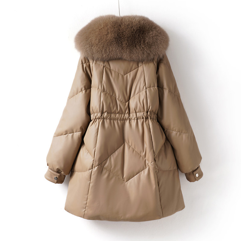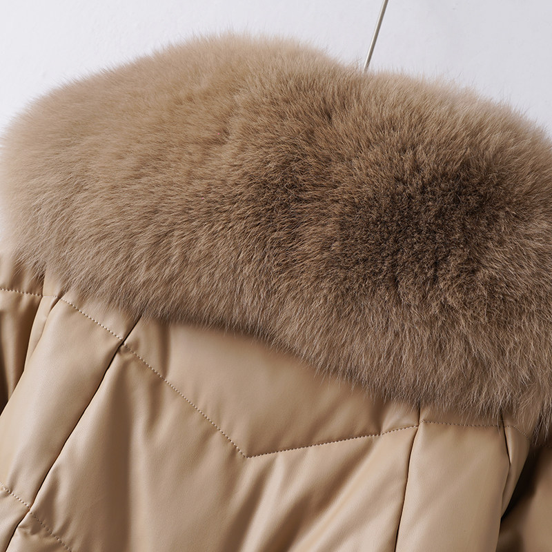 Henning genuine leather down clothing female fox fur collar 2023 Winter cashew sweaty leather fur coat thickened fur coat-Taobao