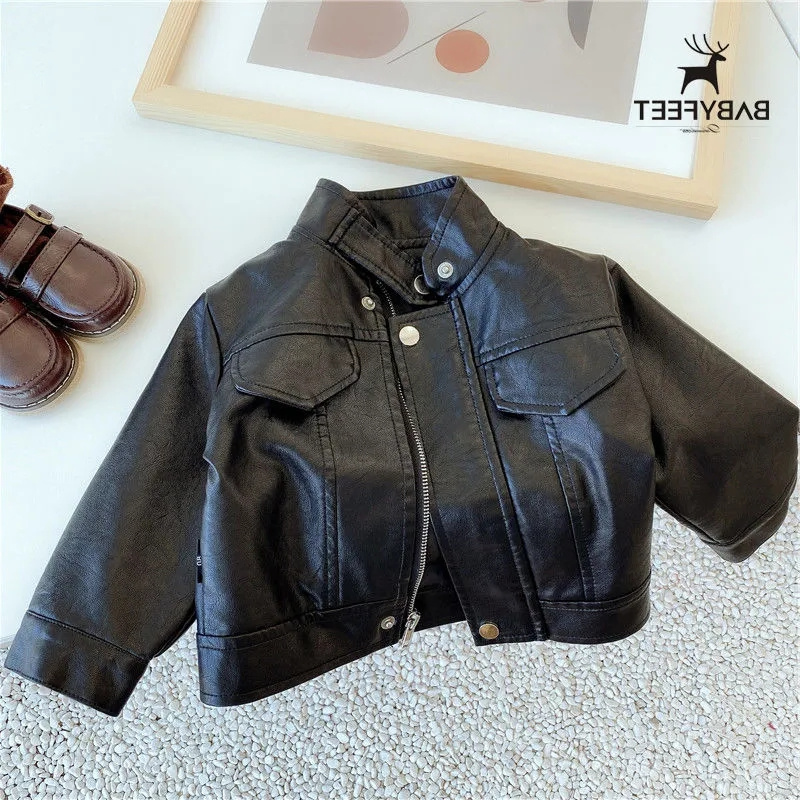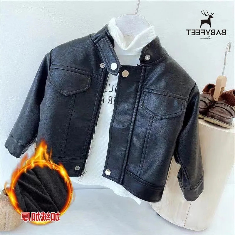 Children's leather jacket Spring and autumn season male and female child handsome gas casual locomotive clothes baby winter plus suede thickened jacket tide-Taobao