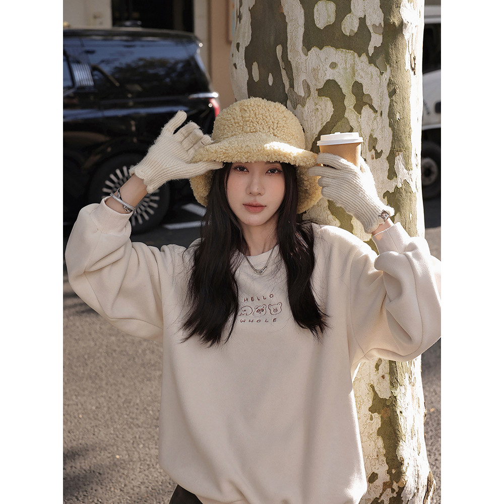 Sticky rice suede white letter sticky rice suede iron tower breakfast glutinous rice suede white bear sticky rice suede light blue small bear with iron color American beer quartz mi miu tie