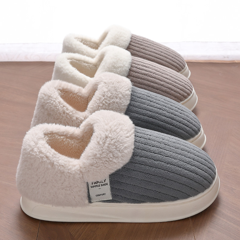 Stomy Comfort Cotton Slippers Men Winter Indoor Home Non-slip Warm Wrap Heel Fleece Thickened Cotton Shoes Man Outwear-Taobao