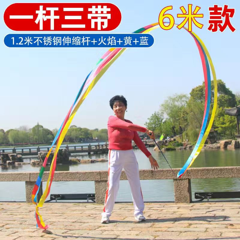 Ribbon Dance Ribbon 6 m-7 colorful floating band plus coarse telescopic pole mid-aged fitness square dance Adult dance dragon ribbon-Taobao