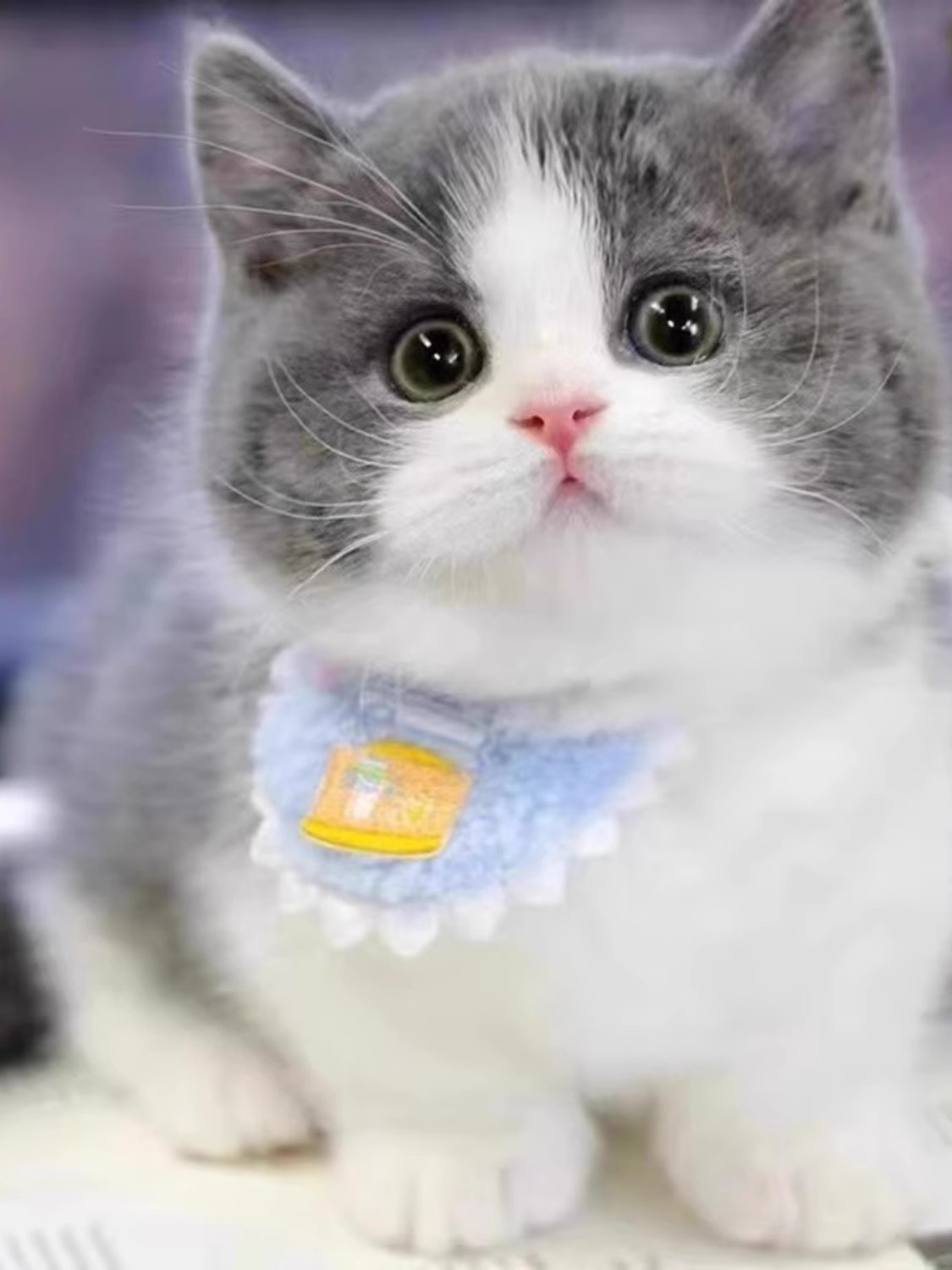 Pure breed of English short blue cat young cat blue and white cat cub with short foot blue cat fat British short hairy cat pet cat living things-Taobao