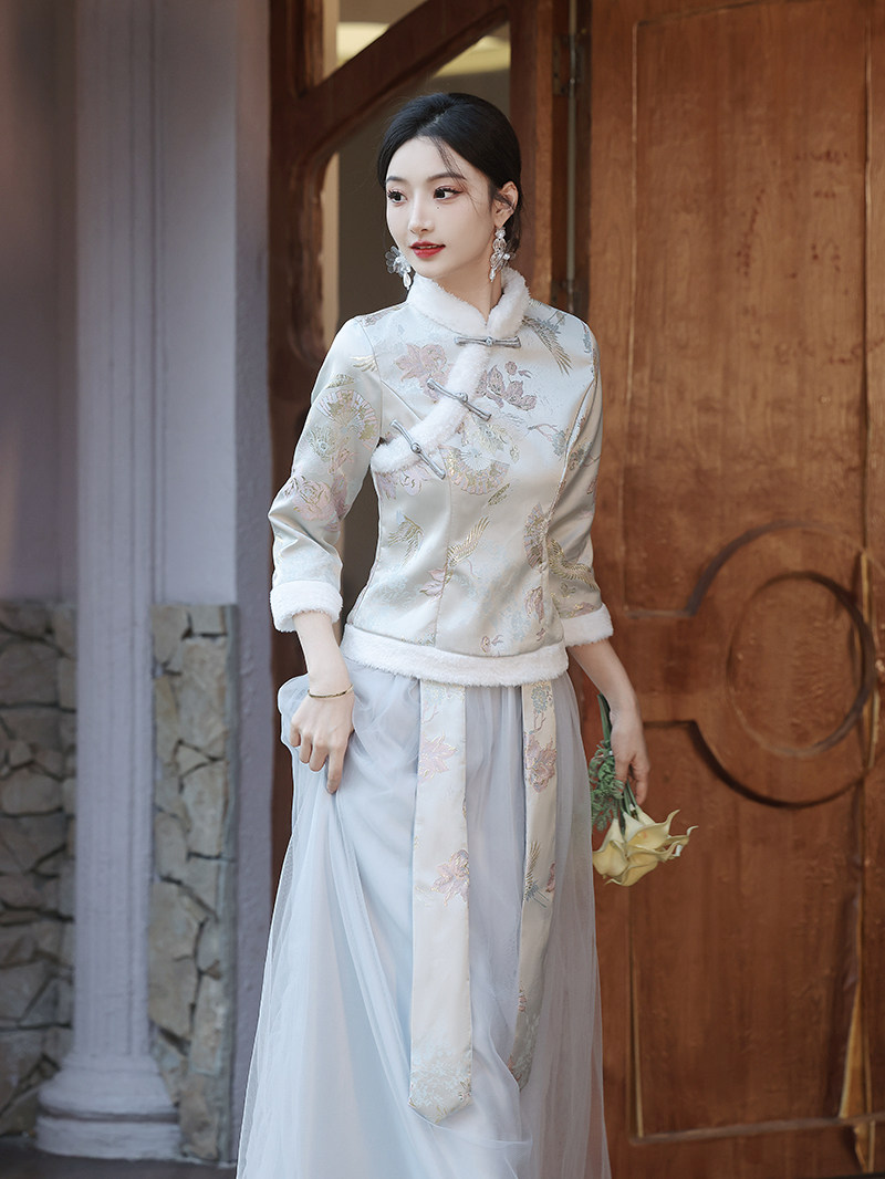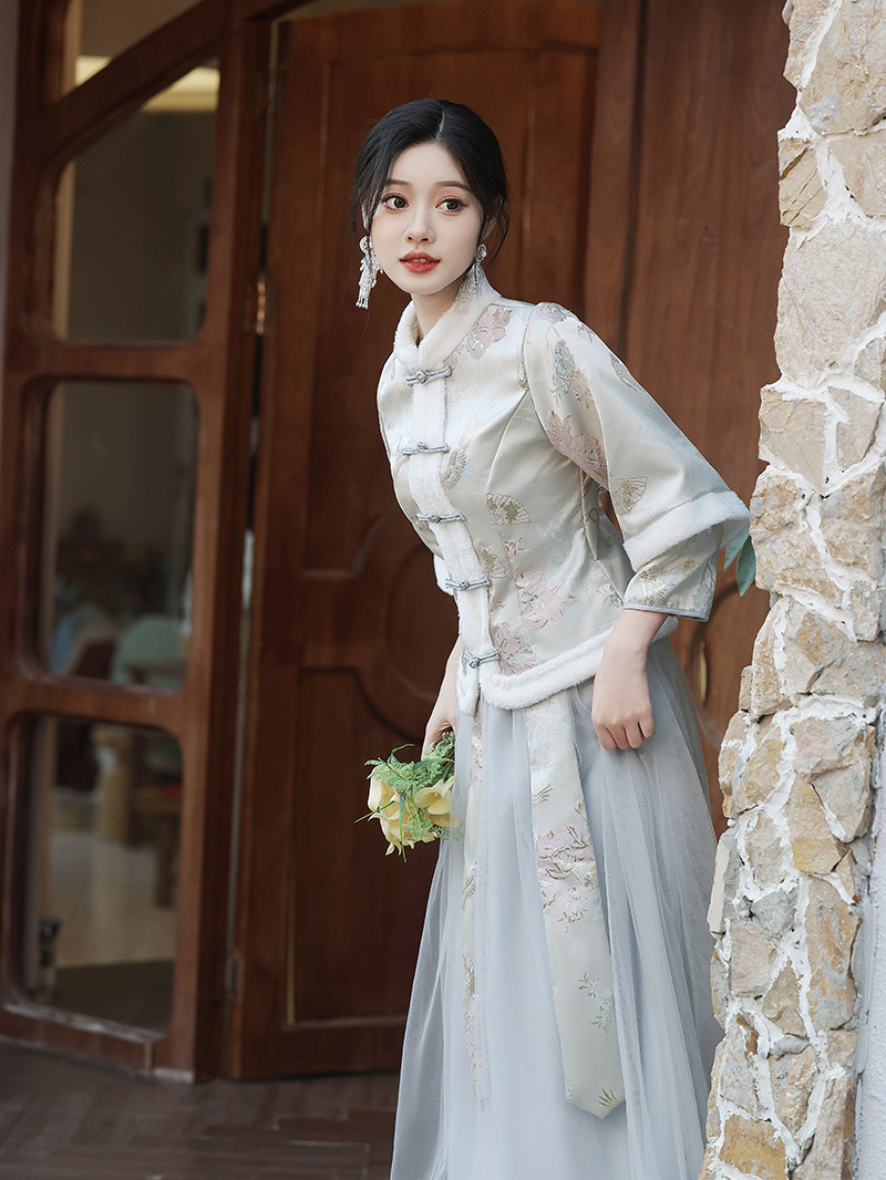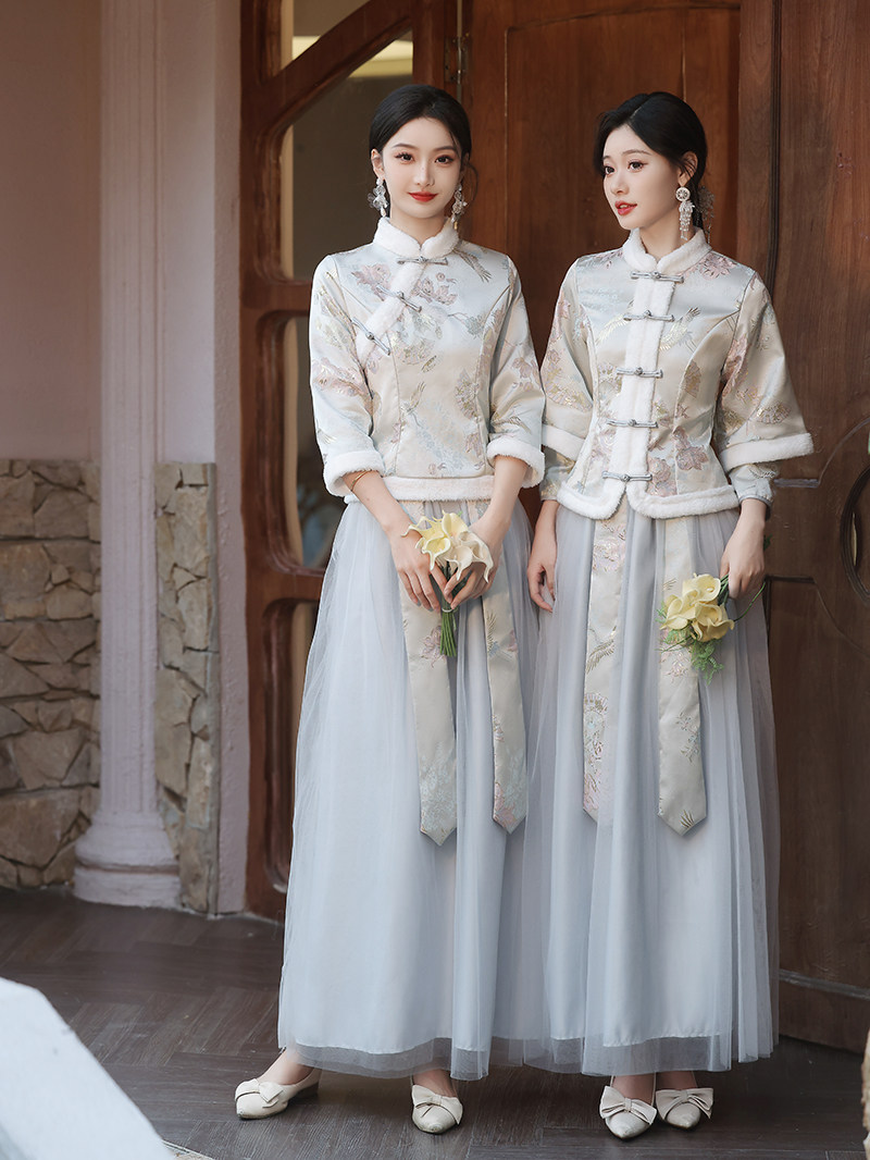 Bridesmaid's clothes Chinese sister group autumn and winter new retro style senior sensation Little crowns slim and long sleeve bestie gown dress-Taobao