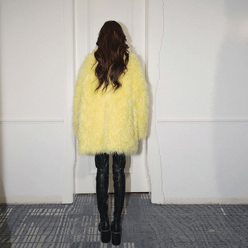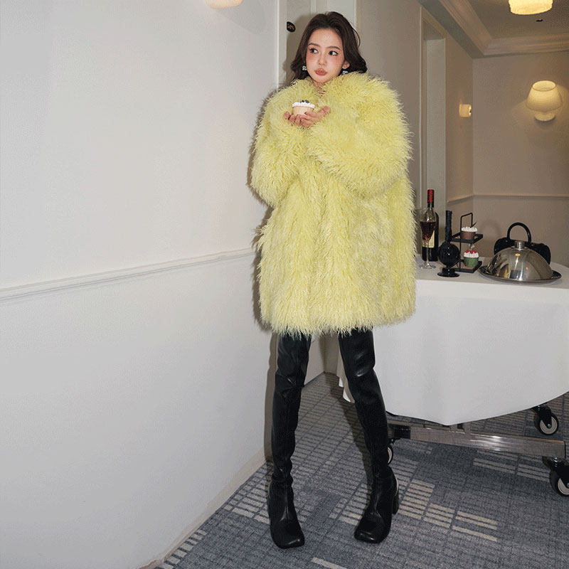 2023 Winter New Products Beach Wool Environmental Protection Leather Grass Jacket Woman 100 Hitch Fluffy Soft Loose Ginger Shine Original Design-Taobao