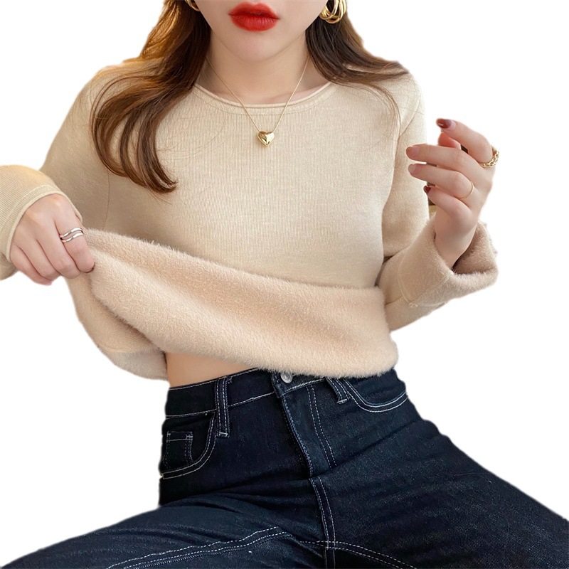 KAIG Round Collar Jacket Plus Thickened Sweater 023 Autumn Winter New Pure Shirt Hitch Knit NN Head Suede Woman 2 Color Bottoms Jersey-Taobao