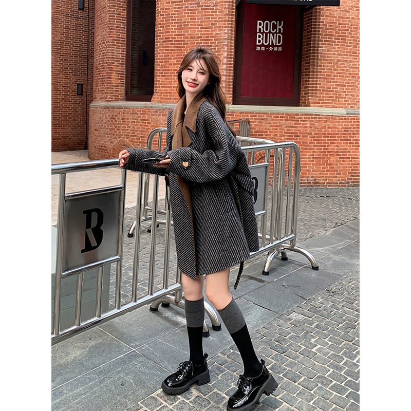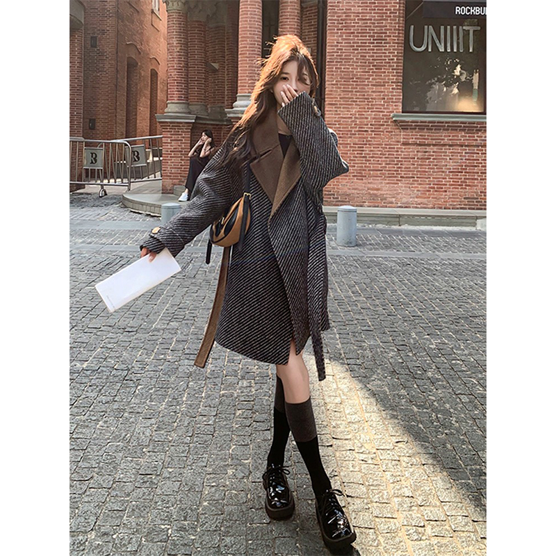BEBE NOBLE RETRO STRIPED SWEATER Coats Woman Mid 2023 Autumn Winter New Merard Son Coat-Taobao