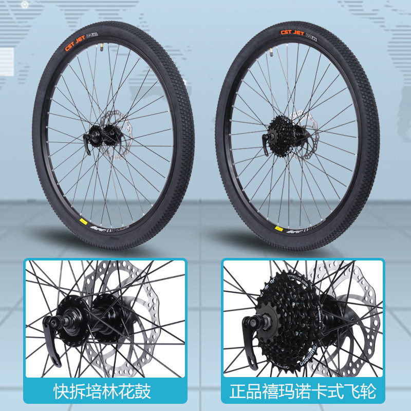 26 inch fast detached front wheel with positive new tire-aluminum alloy Palin bearing flower drum 26 inch Fast demolition rear wheel with positive new tire-with jubilee Maroca style 7 flying-aluminum alloy Palin bearing flower drum 26 inch Quick tear down rear wheel with positive