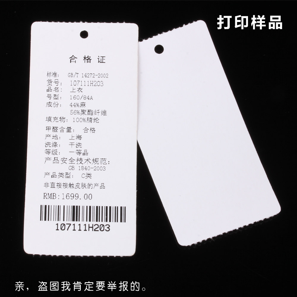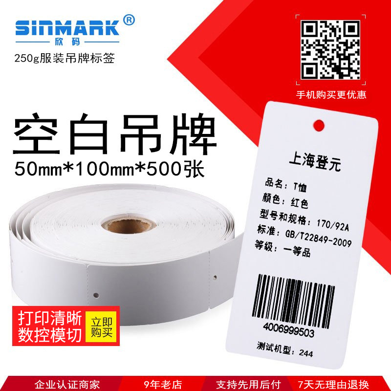 Xin code vertical version 50*100 clothing tag blank certificate self-adhesive printing sticker