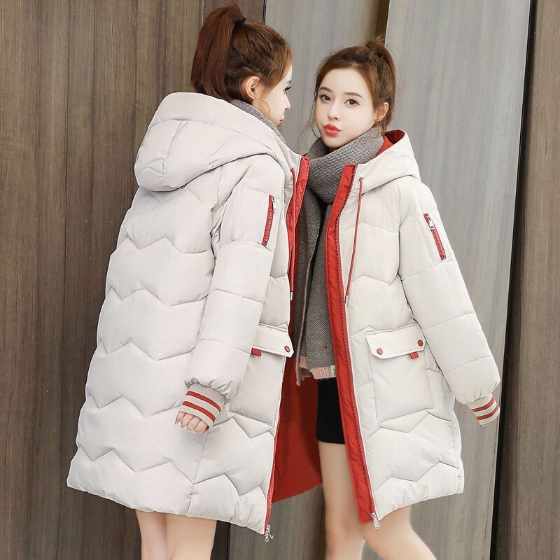 2023 new down cotton clothing female Han version student relaxed thickened large code cotton clot cotton padded jacket in winter jacket with long section-Taobao