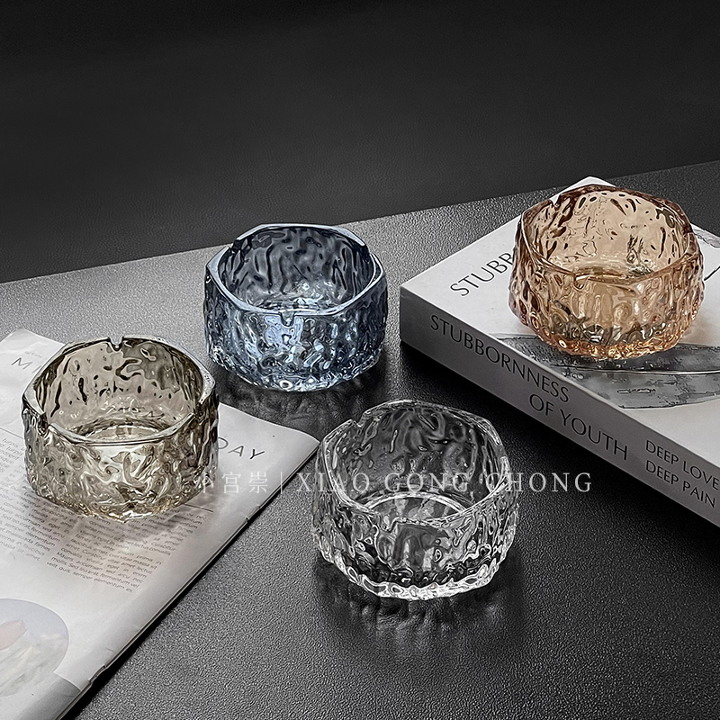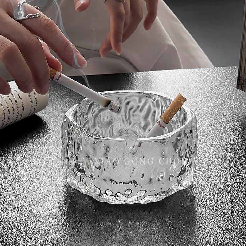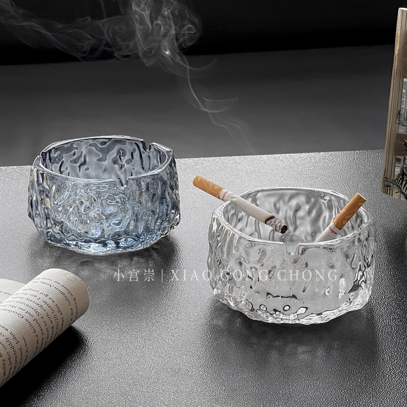 Glacier Glass Ashtrays High-end Atmosphere Upper Class Smoke demagogic office Living room Home Creative anti-fly ash Smoke cylinders-Taobao