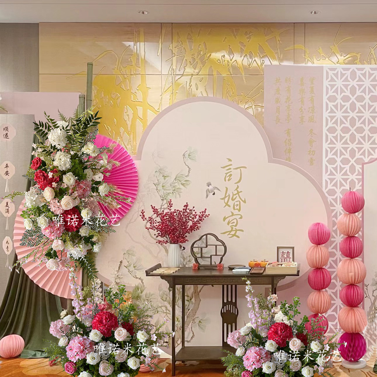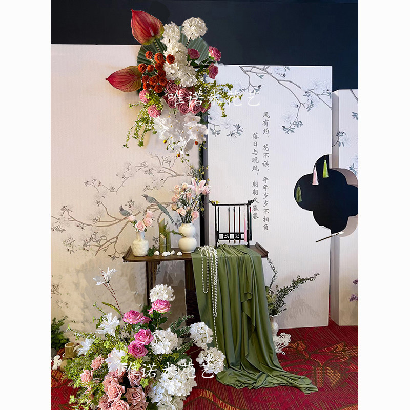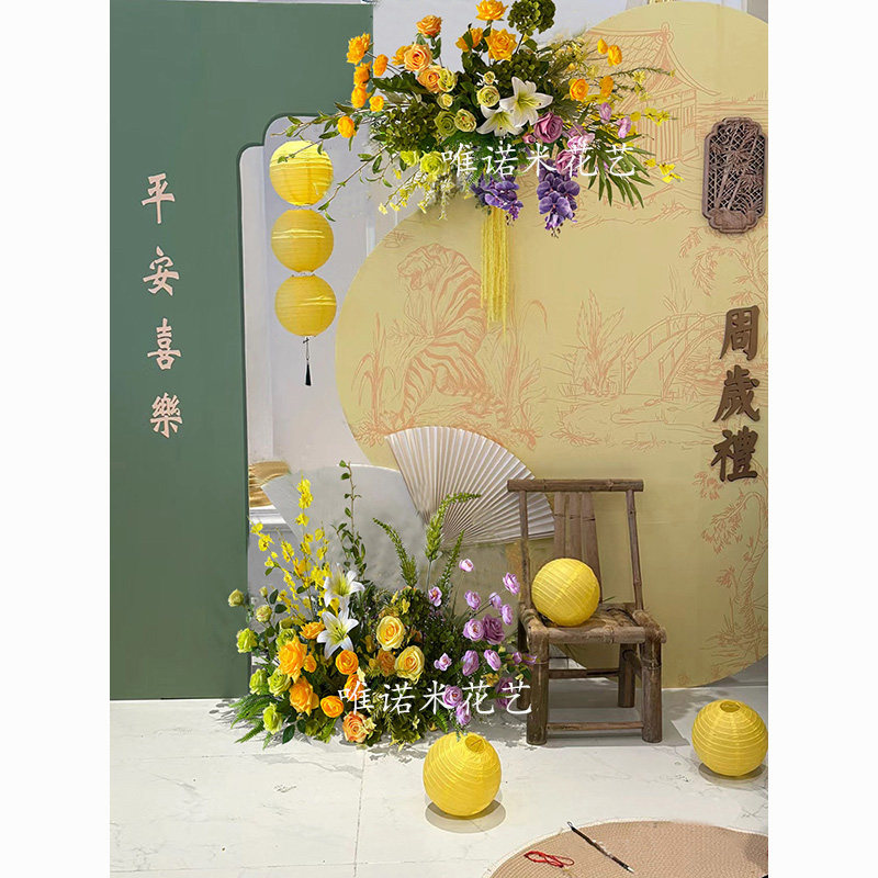 New Chinese Baby Birthday Gift Yellow Ensemble Floral Arrangement Small Red Book Co-style Background Kt Board Emulation Flowers Hundreds Day Banquet-Taobao
