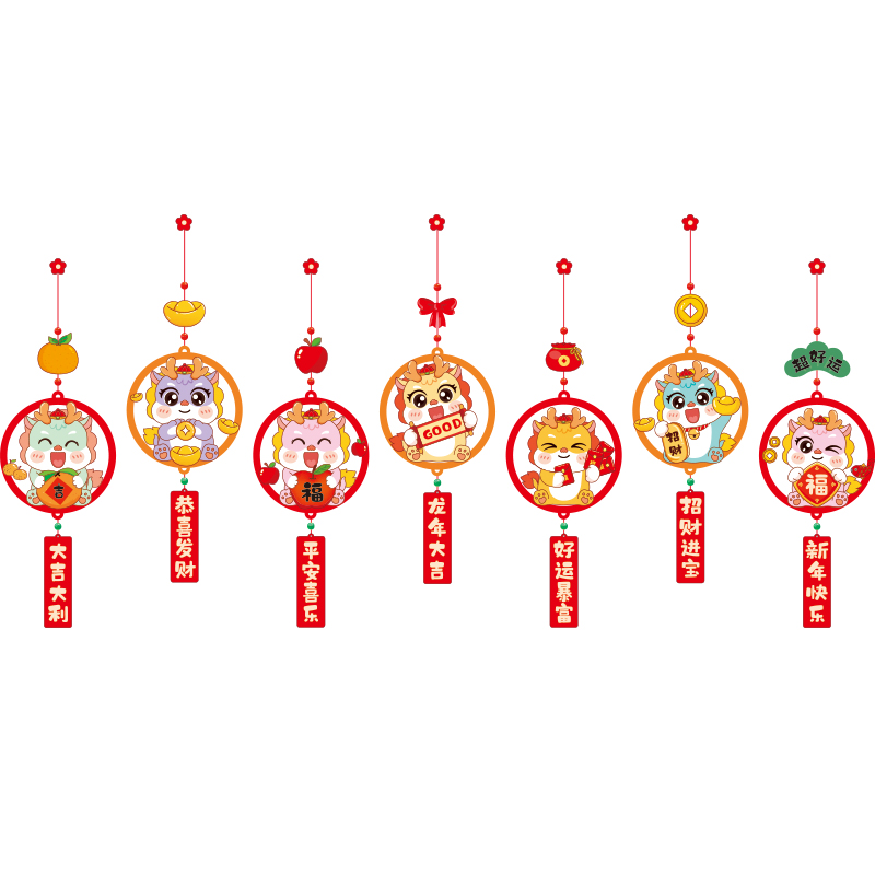 New Year's Longbao hanging decoration (with back glue) New Year's Longbao hanging decoration (electrostatic version) cute dragon year hanging decoration (electrostatic version) Fulong hanging strings (with back glue) Longlong Ping An Happy New Year Happy New Year (with back glue)