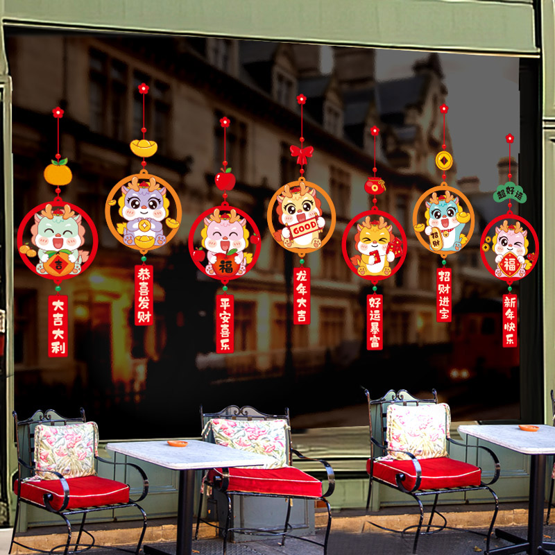New Year's hanging decorations 2024 New Year's Lunar New Year decorations shop shop window electrostatic glass sticker windows floral atmosphere to arrange Spring Festival-Taobao