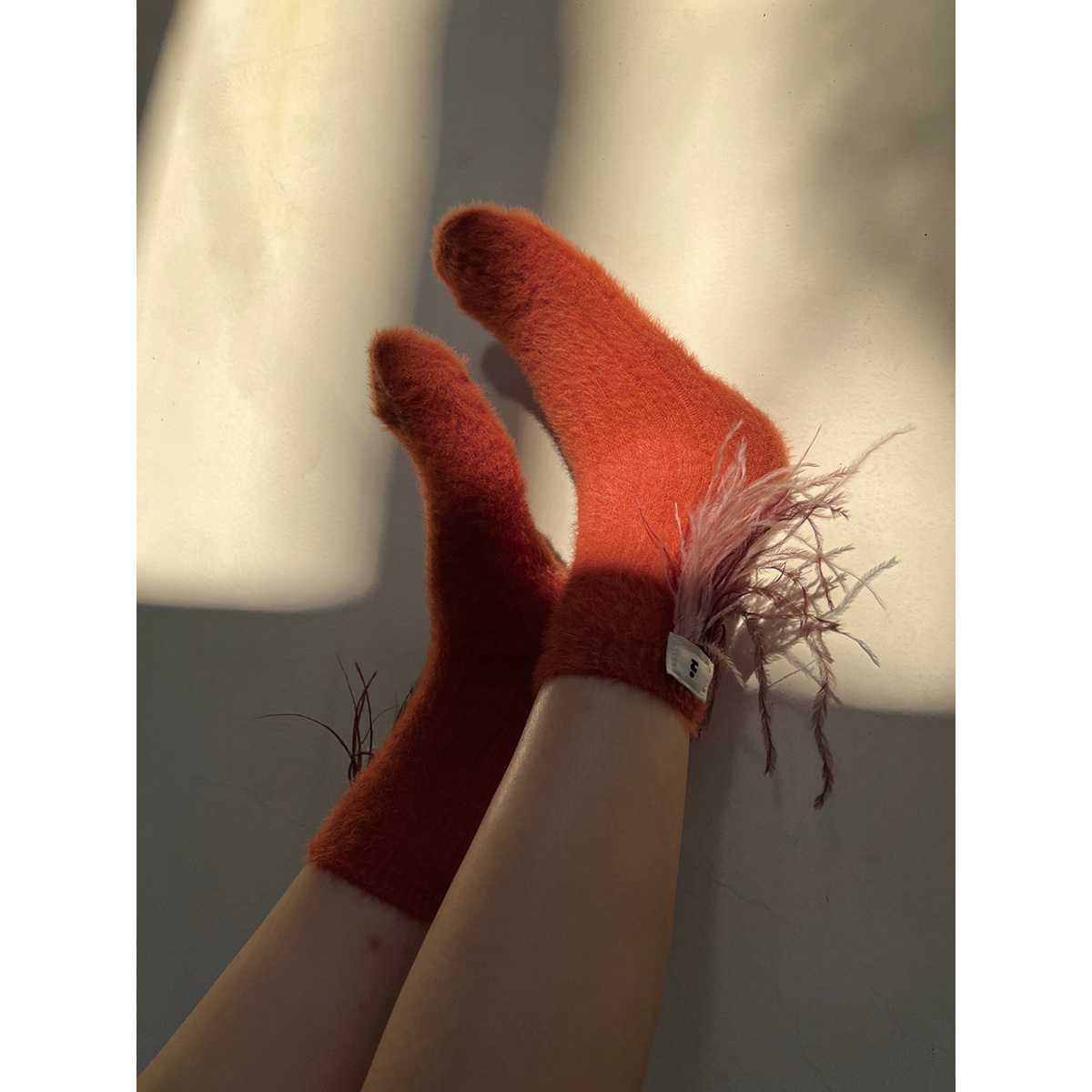 Tagi Gradient Collision Color Feather Collage Thickened Warm Water Minke Detachable 6 Color Short Socks-Taobao