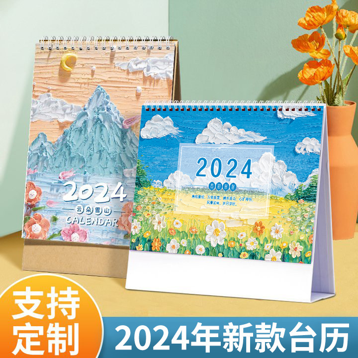 Table calendar 2024 New calendar Custom Desktop Pendulum Pieces Creative Minimalist Business Company Publicity Business Lunar Calendar-Taobao