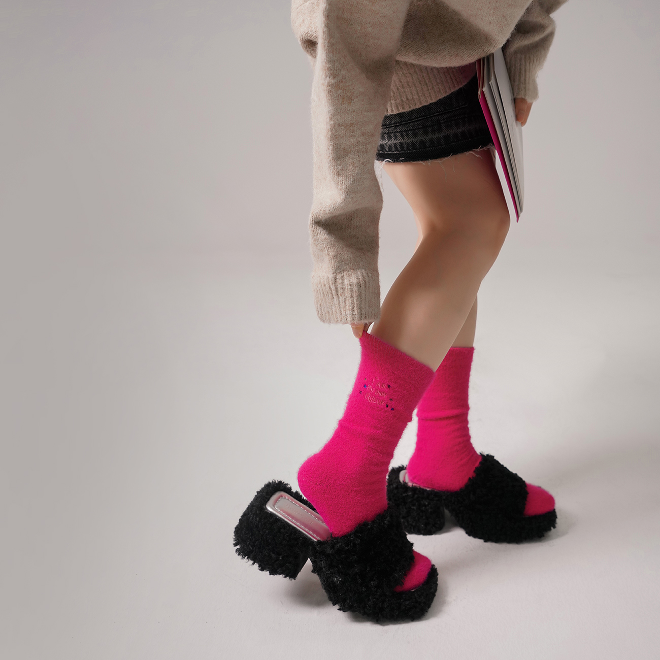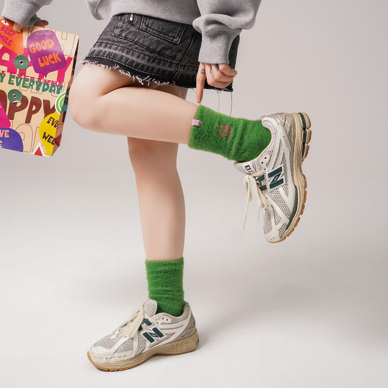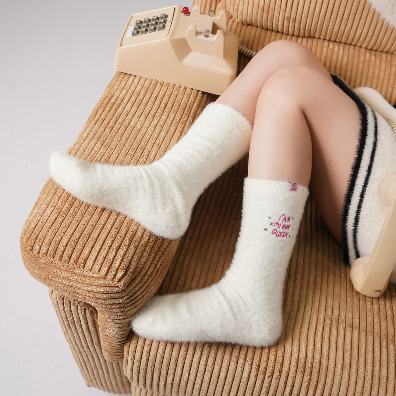 CHUU Alphabet Embroidered Plush Midbarrel Socks Lady 2023 Winter New Products Surge Socks Hit 100 Fashion Socks-Taobao
