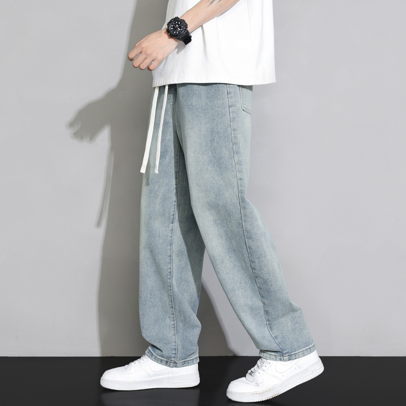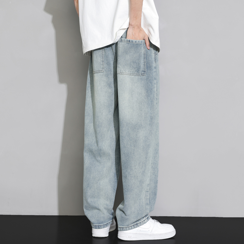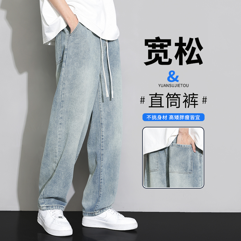 Retro Denim Pants Men's Autumn Winter 2023 New Loose Straight Barrel Broadlegged Ruffhanger Pants Trendy American High Street Trousers-Taobao