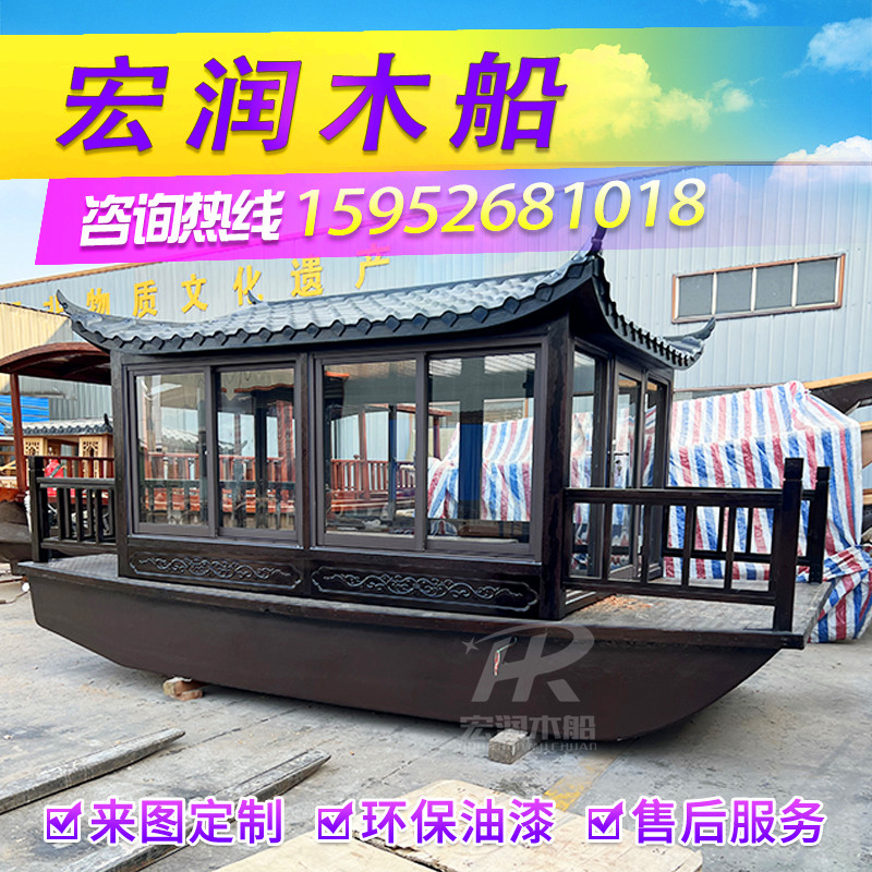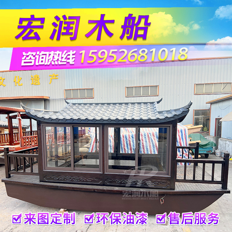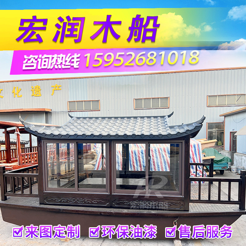 Wooden boat painting Dining Room Electric Tourism Scenic Spot Small Water Dining Hall Imitation Ancient Solid Wood GRP Handmade Wedding-Taobao