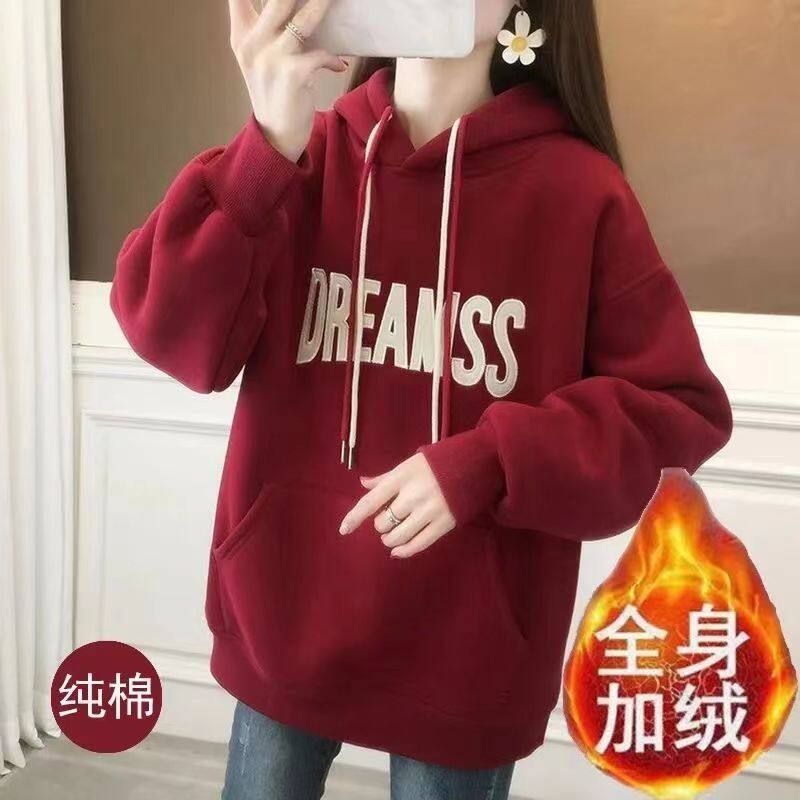 Even cap embroidery sweatshirt garnter thickened with warm autumn and winter new loose Han prints 100 hitch jacket-Taobao