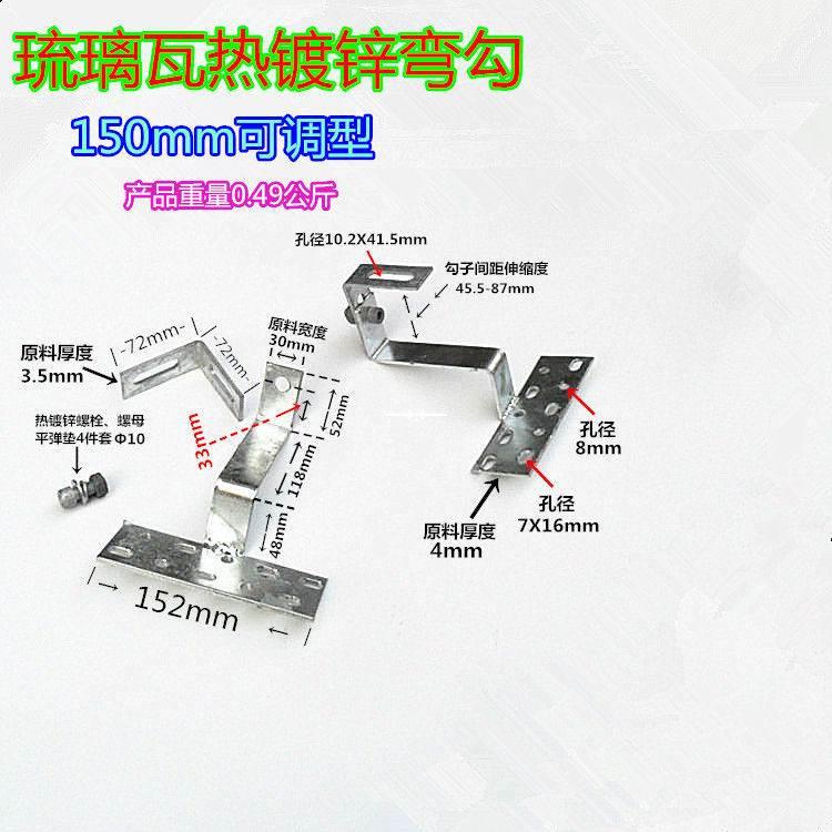 Hot-Dip Galvanized Photovoltaic Bracket Accessories Hook Big Bend Hook Glazed Tile Roof Hook Solar Panel Components High Strength-Taobao