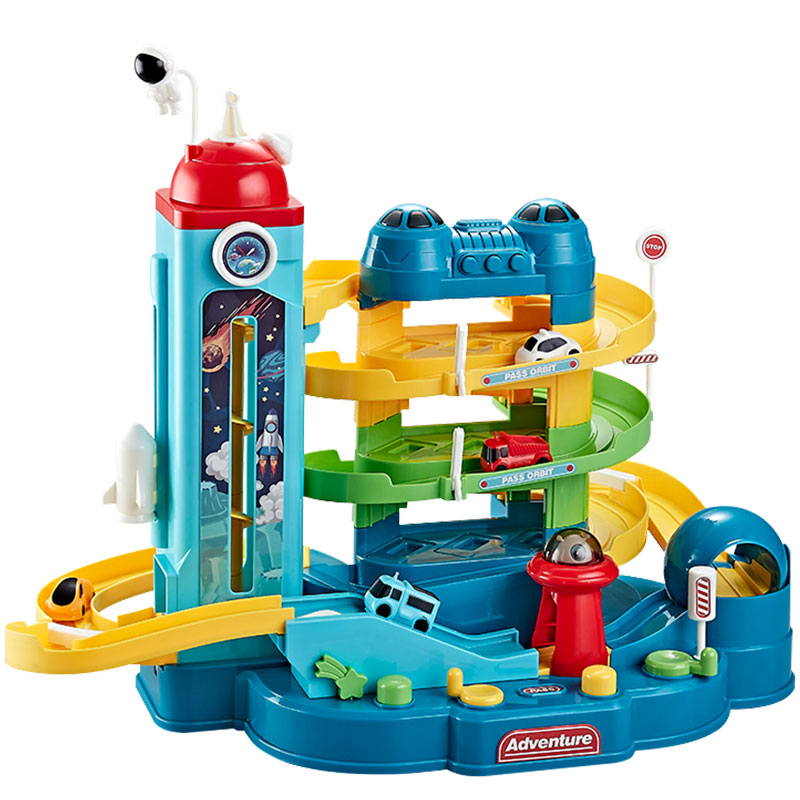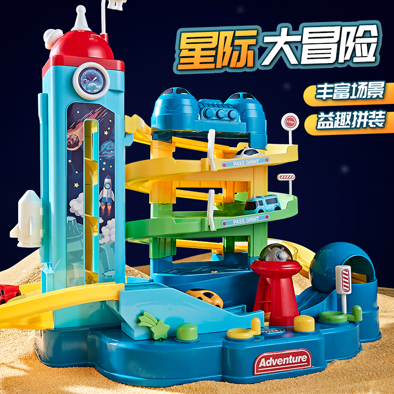 (4 Floors Rocket Building Trespassing Big Adventure) Non-electric models to deliver 4 small car electric commercial box packaging (4 floors Rocket Building Trespassing Great Adventure) Electric models to deliver 4 small cars to deliver batteries