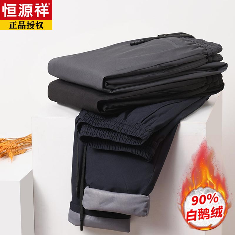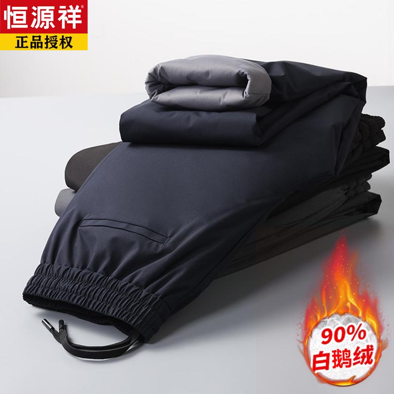 Hengyuan Xiang Men's Down Pants Winter Anti-Chill Windproof Plus Suede Warm Pants Outside Wearing Loose Big Code Straight Barrel Casual Pants-Taobao