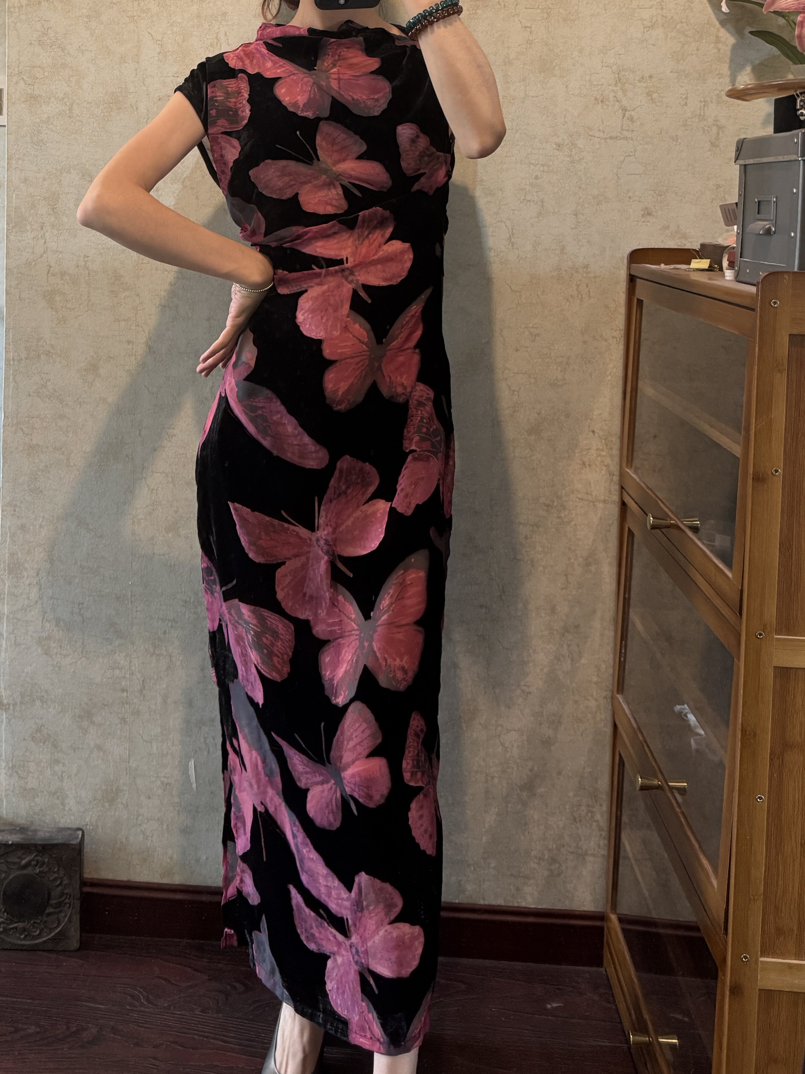 The retro style of the wind,A long flag robe.,The cheongsam.