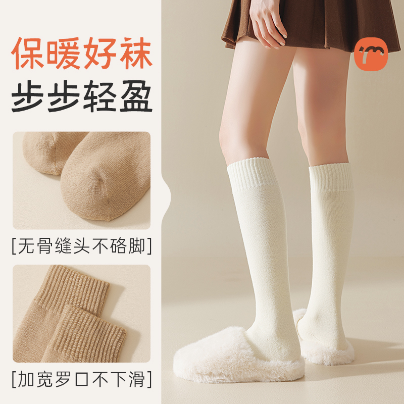 (Non-slip at no end to keep the edges warm and not bloated) (2 pairs of warm plush calf socks) black milk white (2 pairs of warm plush calf socks) white milk white (2 double dress