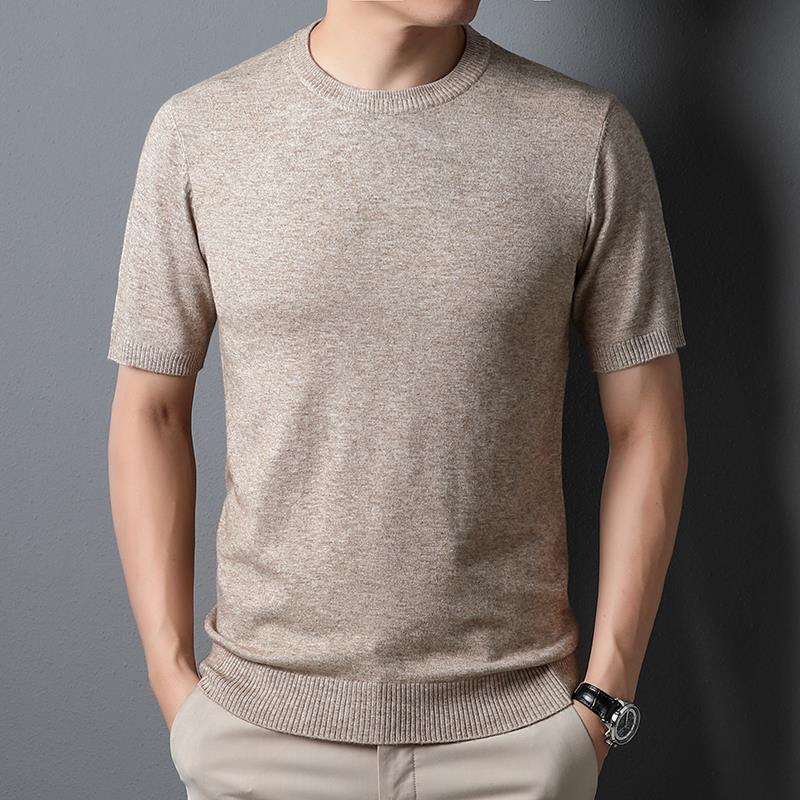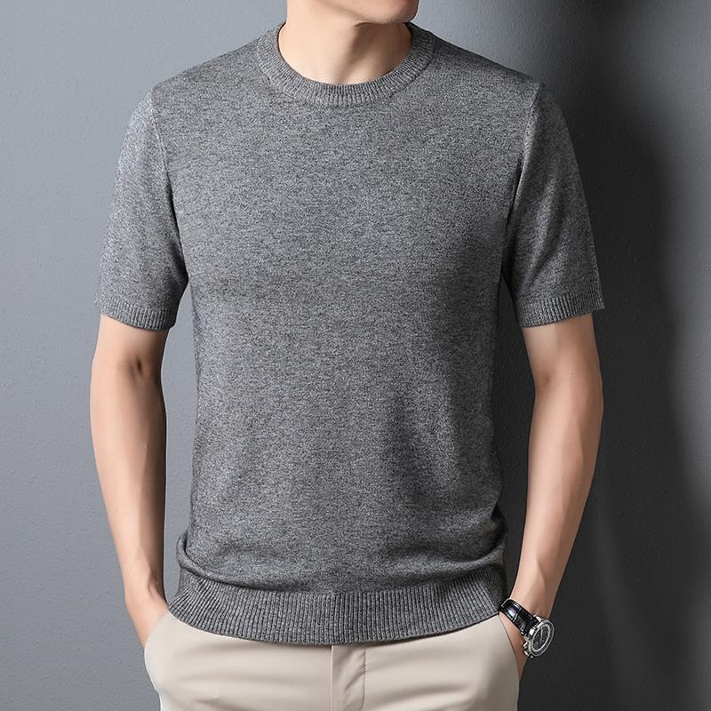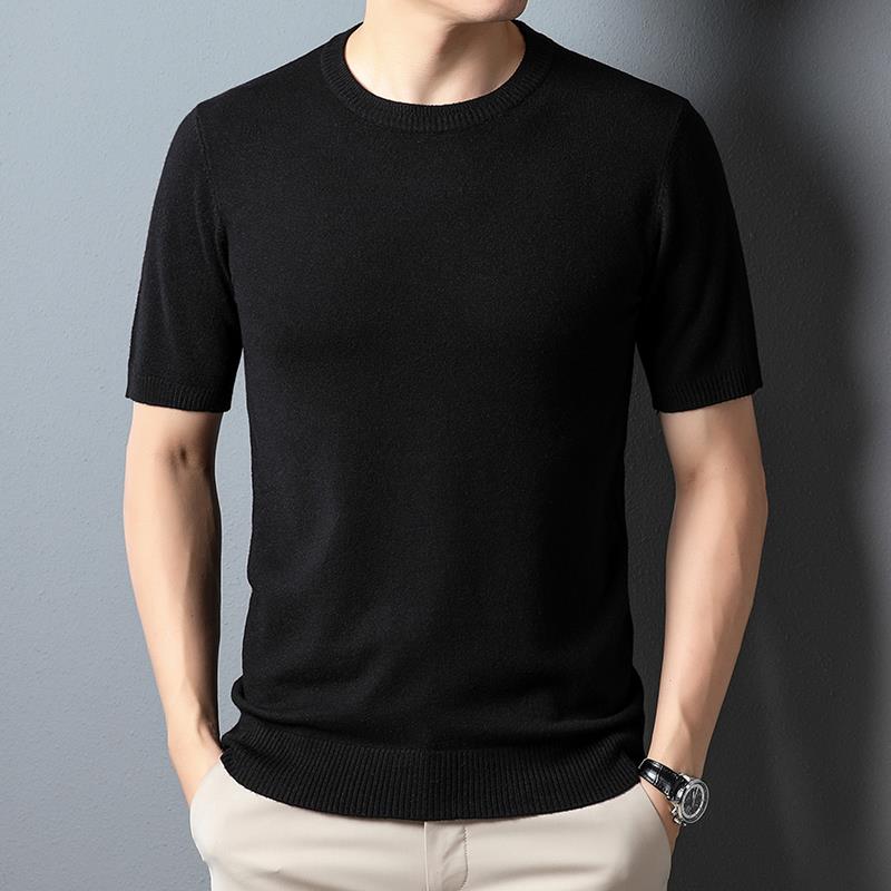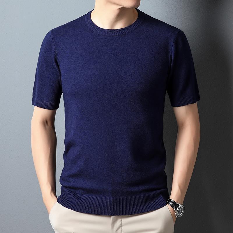 100% pure cashmere sweatshirt men's thin short sleeves mid youth autumn and winter round collar pure color sweater half sleeve needle weaselweaters-Taobao