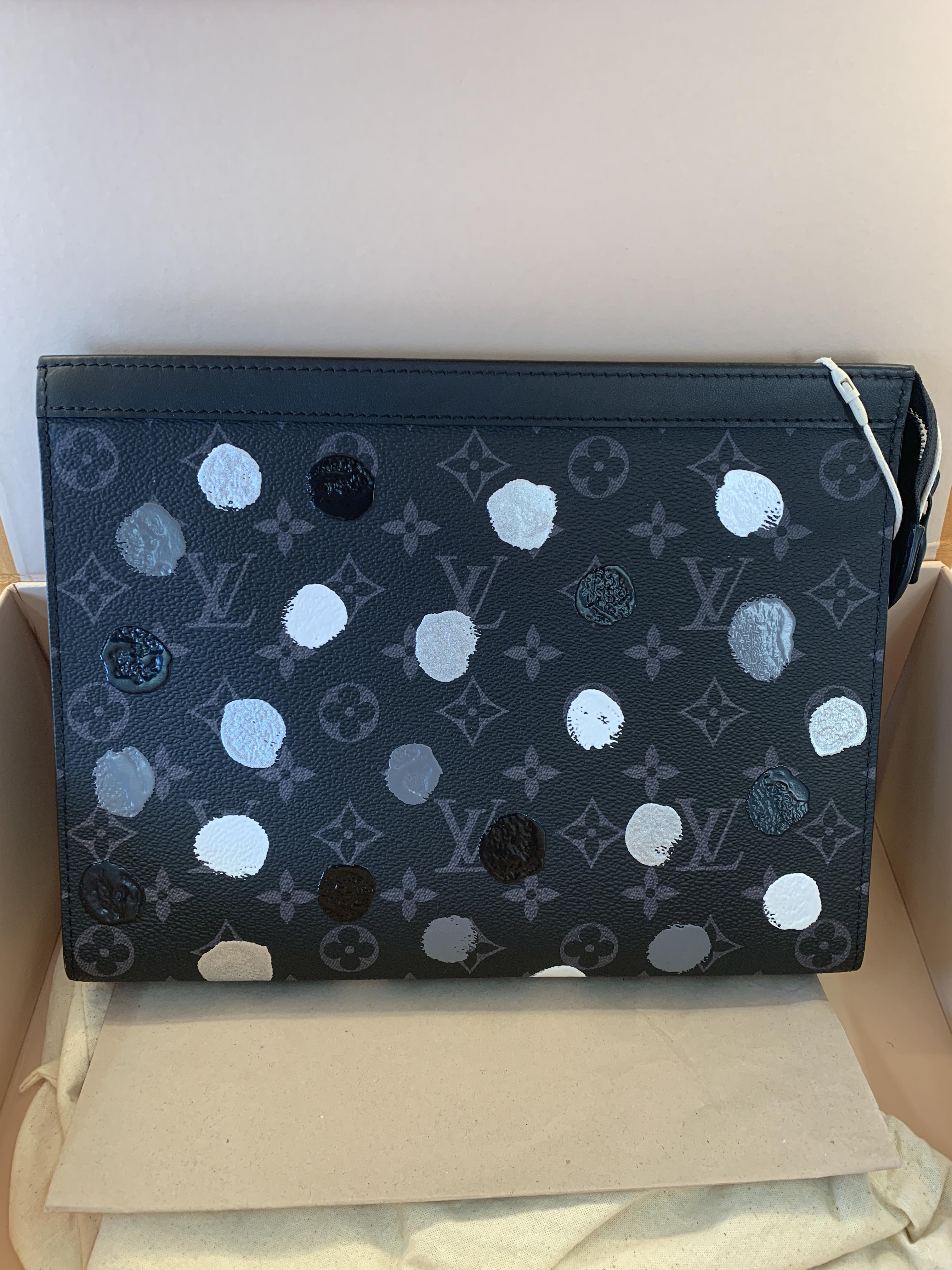 LV Louis Vuitton black flower polo points grass among the joint hands to get the washing bag cz-Taobao