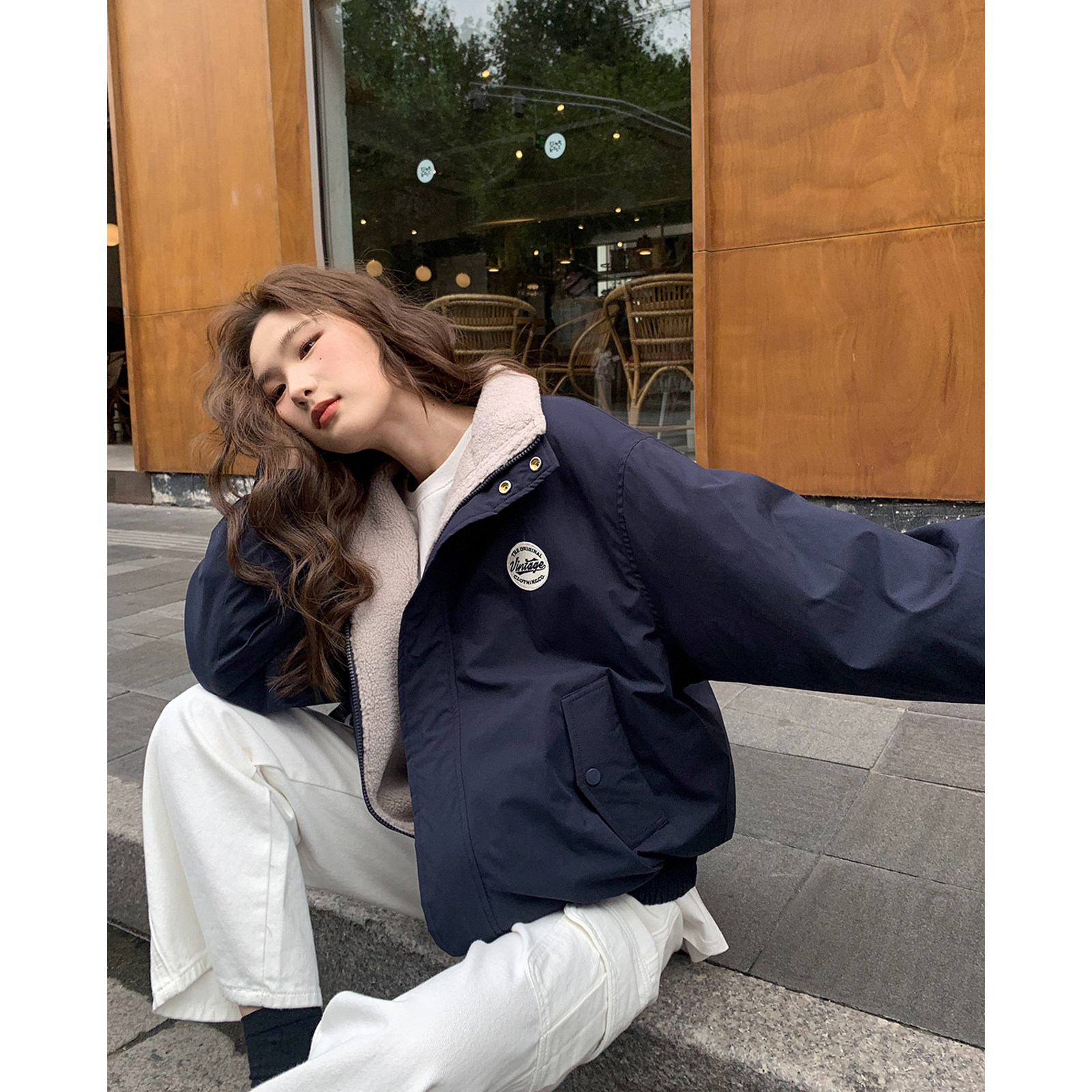 Hello Carnon College Wind Badge Collar Jacket Lady Autumn Winter 2023 New Loose Lenty Jacket-Taobao