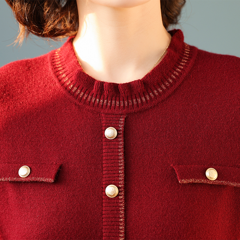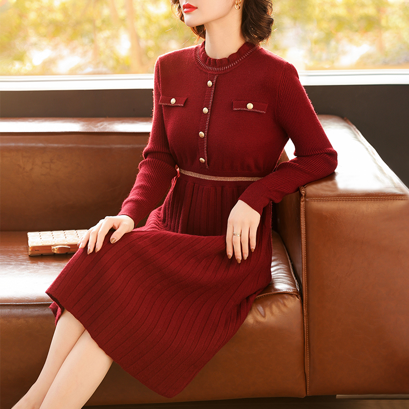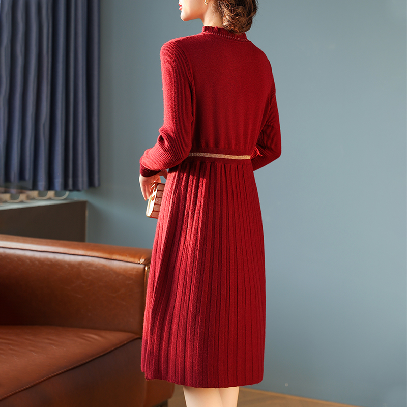 Mother Dress 2023 Autumn Winter New Knit Dress Dress Middle Aged Woman Winter Ben Year Red Sweater Dresses Base Dress-Taobao