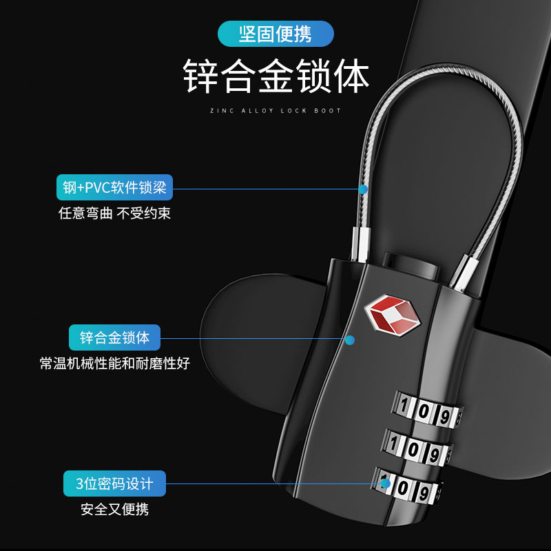 TSA rounded wire rope lock-black TSA rounded wire rope lock-silver TSA rounded wire rope lock-dark blue black silver-TSA rounded wire chain black