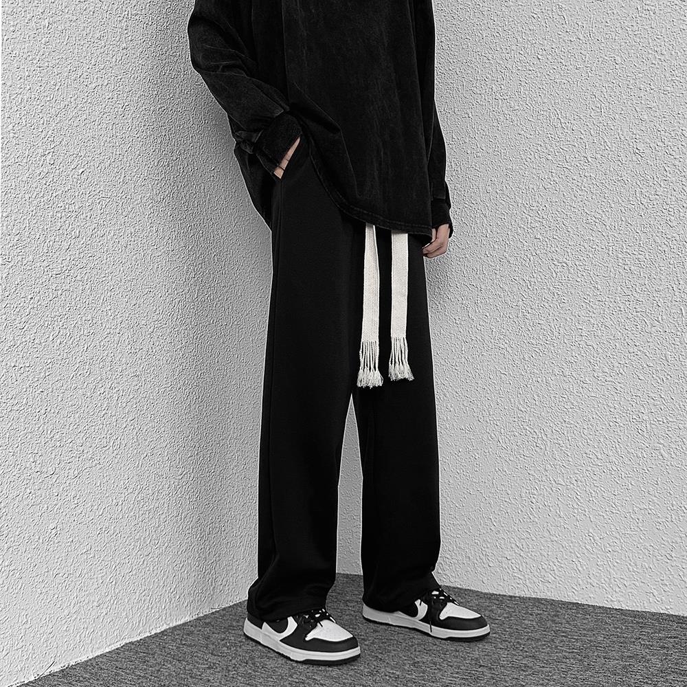 Black Casual Pants Male's Tide Cards Straight Barrel Loose Broadlegged Pants Autumn Winter Plus Suede Trendy Long Pants Advanced Sensation-Taobao
