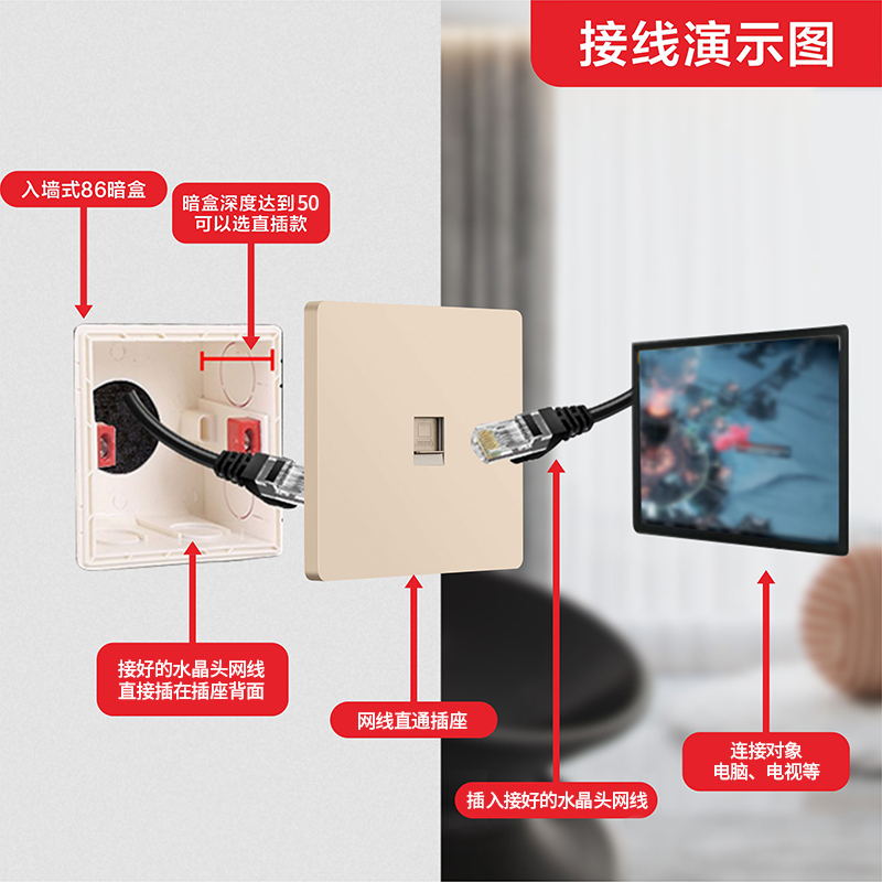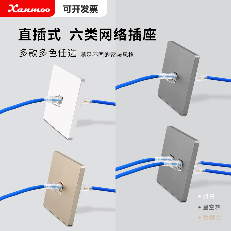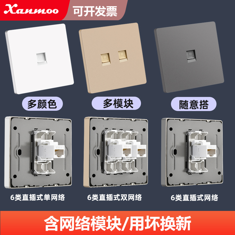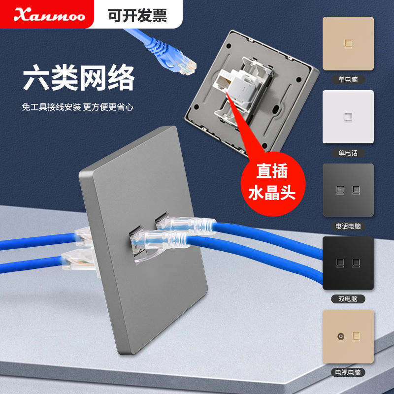 Free wiring Straight insertion 86 Type of concealed supersix Type of network Computer socket Broadband Network Line one thousand trillion Double network port Panel-Taobao