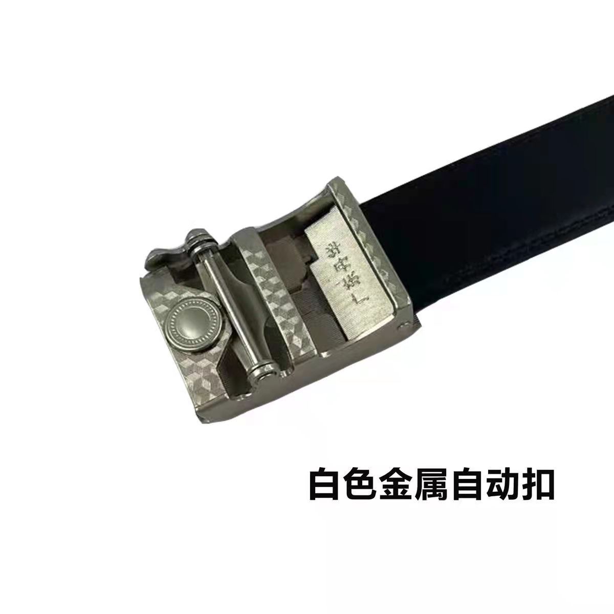 Silver buckle head leather strap black inner belt narrow section imitation leather security Automatic buckle Security belt Work belt-Taobao
