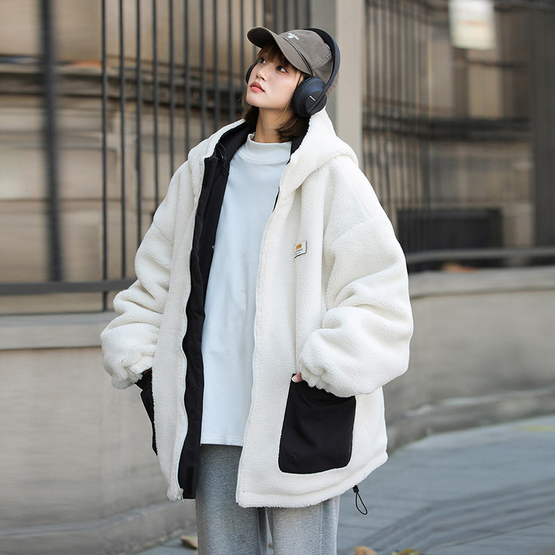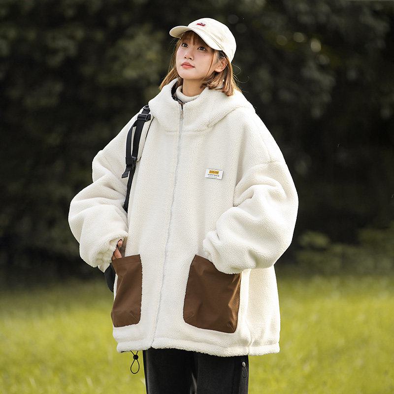 Back force Double face wearing cashmere jacket male and female section 2023 new autumn and winter plus suede thickened warm rocking grain suede cotton clot-Taobao