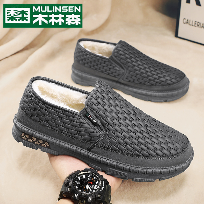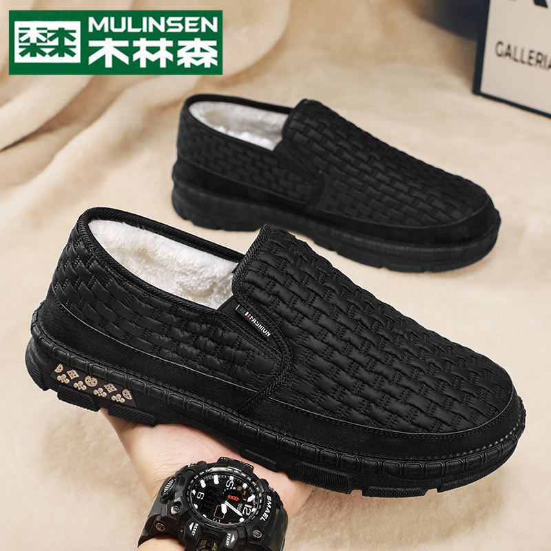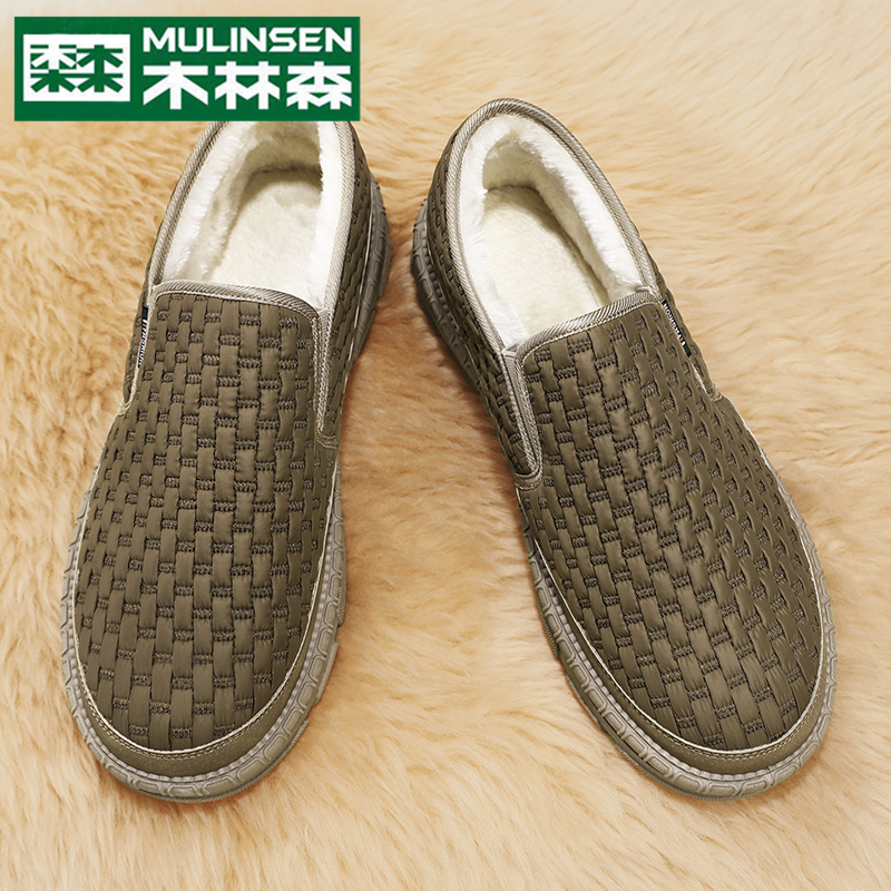 Wood Linson Canvas A foot pedal men's shoes winter plus suede thickened Warm Bean Cotton Shoes Men's Casual Sloth soft-bottom-Taobao