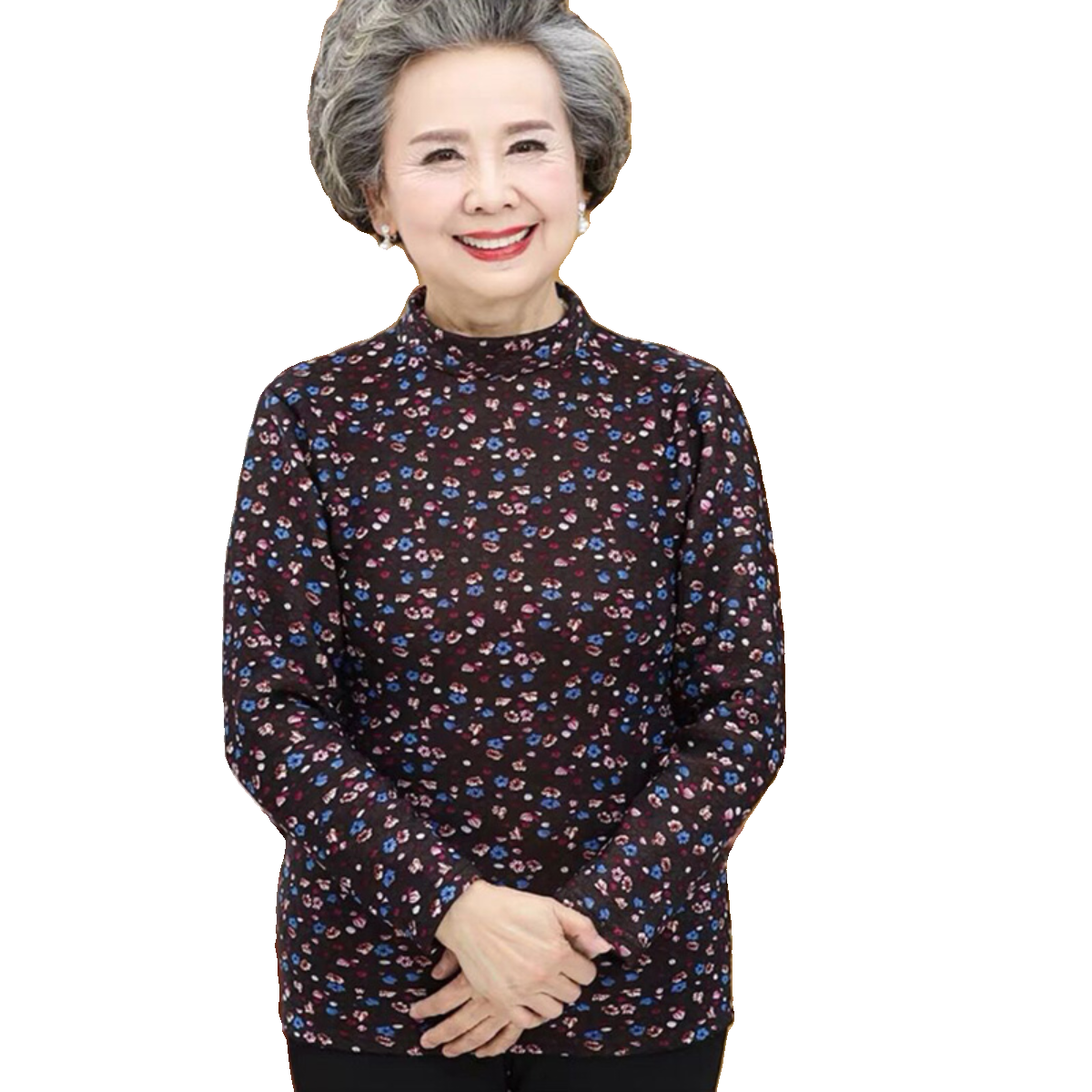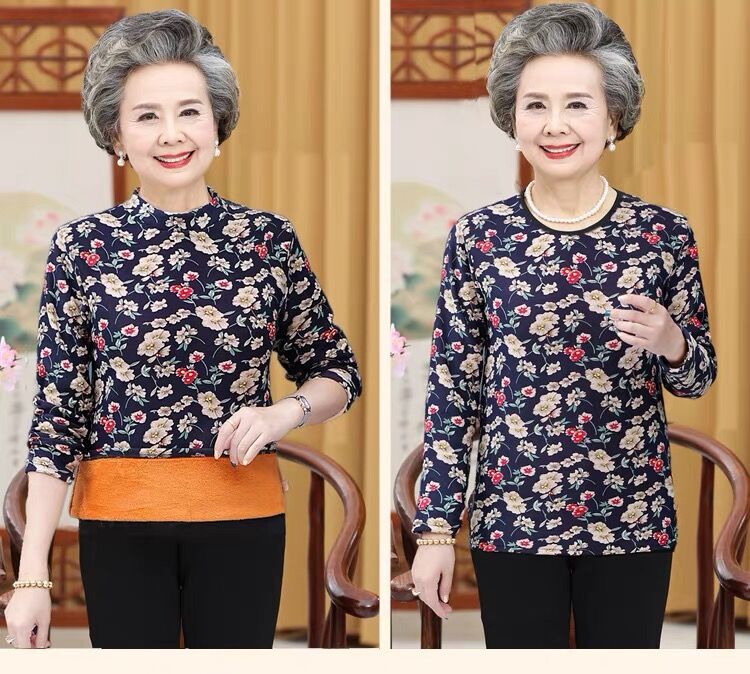 The old grandma hit the undershirt 70 to 80 years old winter old lady thickened plus velvet elderly half high collar warm blouses women-Taobao
