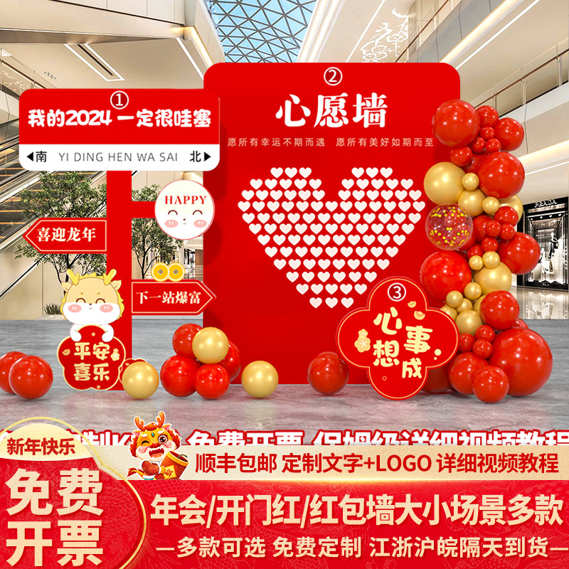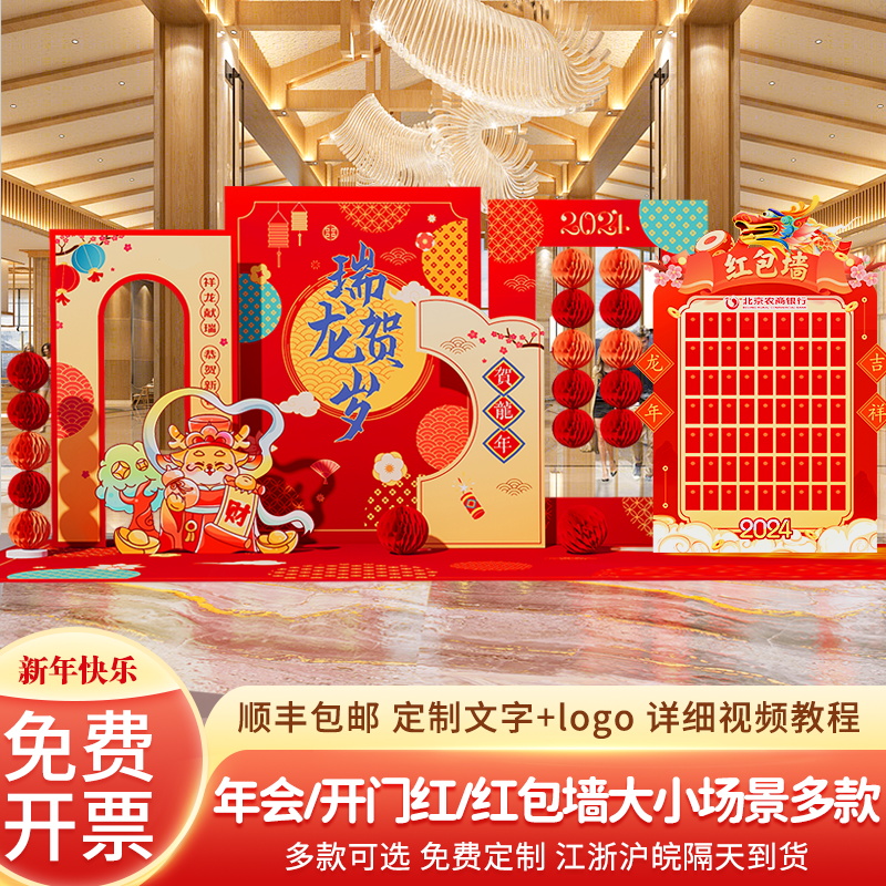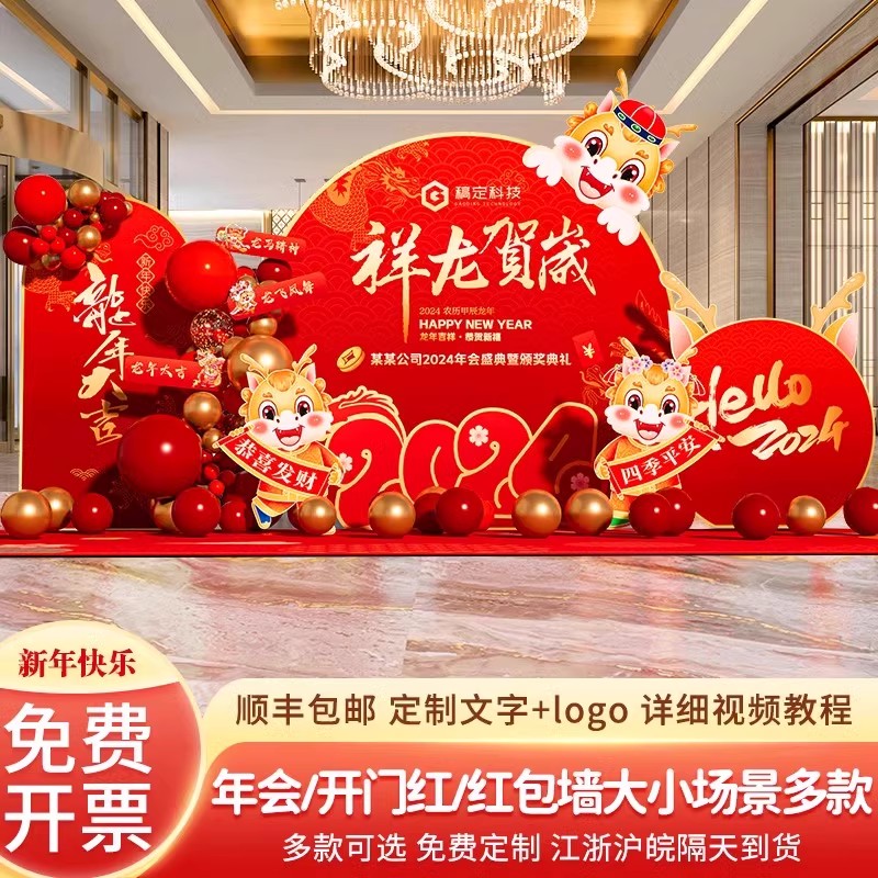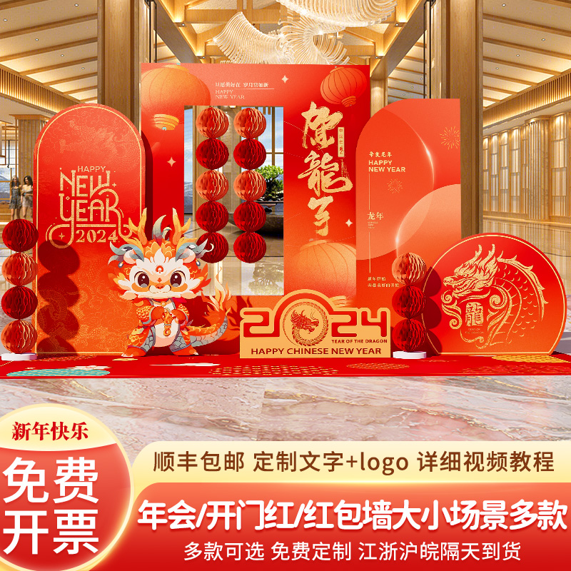 2024 New Annual Meeting Placement of Scene Atmosphere Decorations Dragon Year Spring Festival Beauty Chen Ktboard Sign up to Background Wall Custom-Taobao