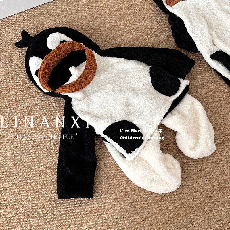 Pro-child clothing autumn and winter clothing male and female penguin pyjamas pyjamas double face suede mother-daughter dress Coral Fleece home Costume Mother Dress-Taobao