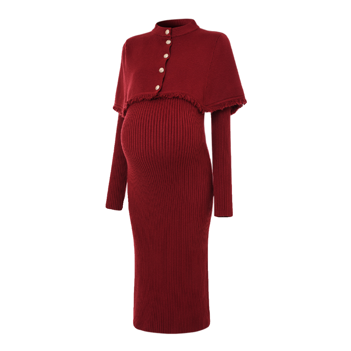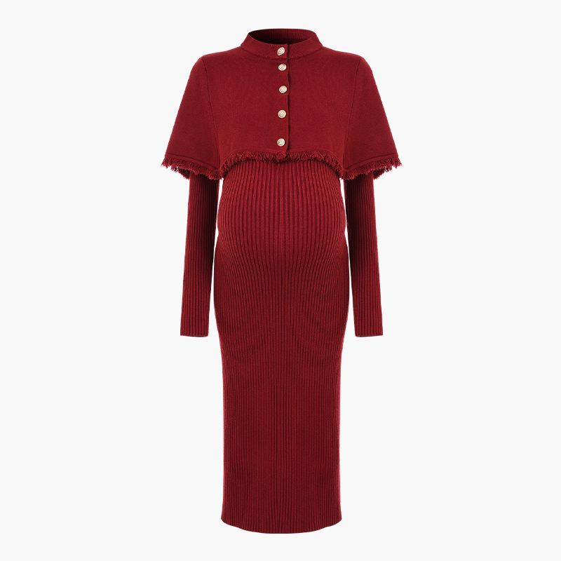 French ARIELLE DE PINTO Pregnant Woman Suit Autumn winter paragraph with shawl sweater with knitted one-piece dress suit-Taobao