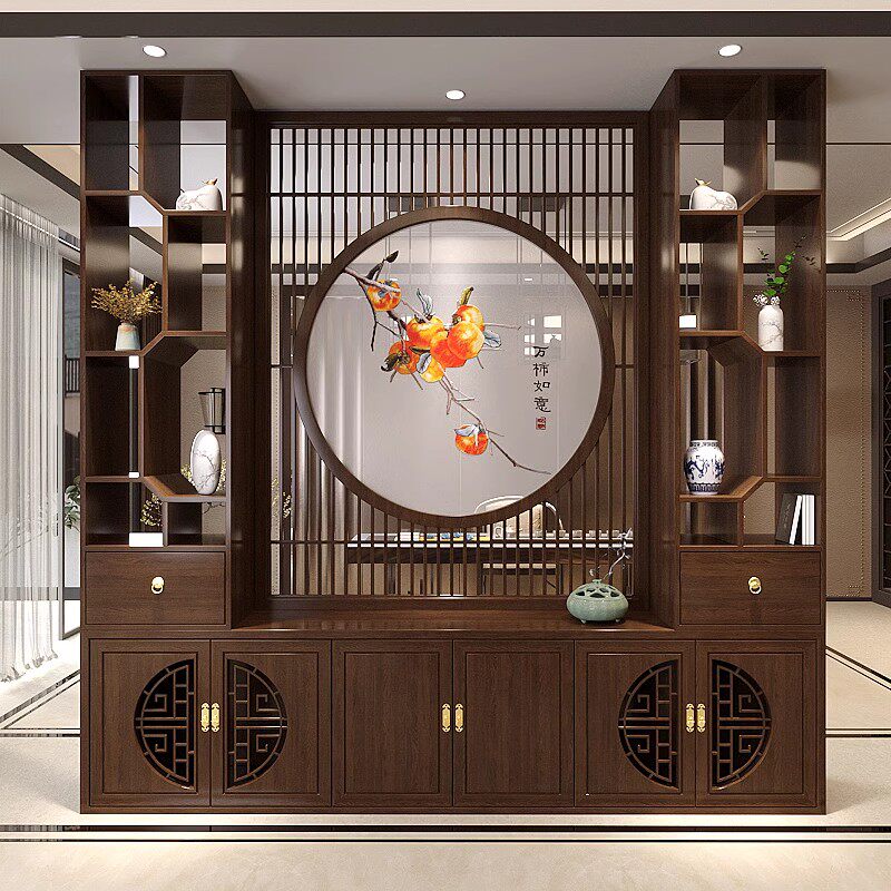 New Chinese Screen Partition Cabinet Living-room Dining Room Entrance home Shelf Simple modern shielded solid wood Guan Guan Cabinet-Taobao
