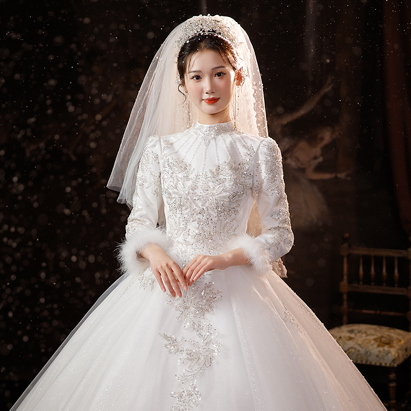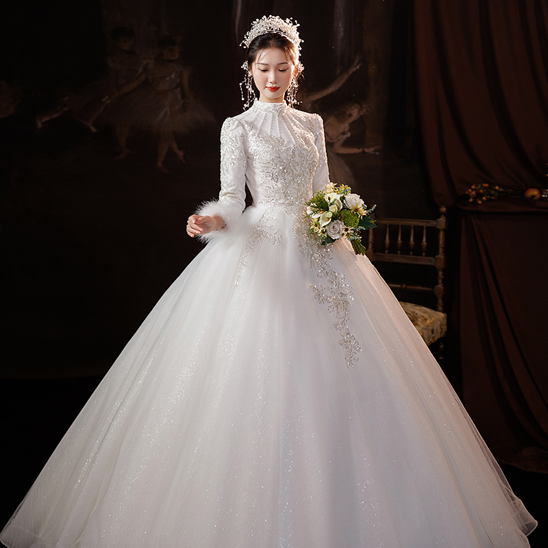 Fugitive princess wedding dress 2023 new bridal main yarn French style light little sub winter long sleeves thickened warm Qi ground-Taobao