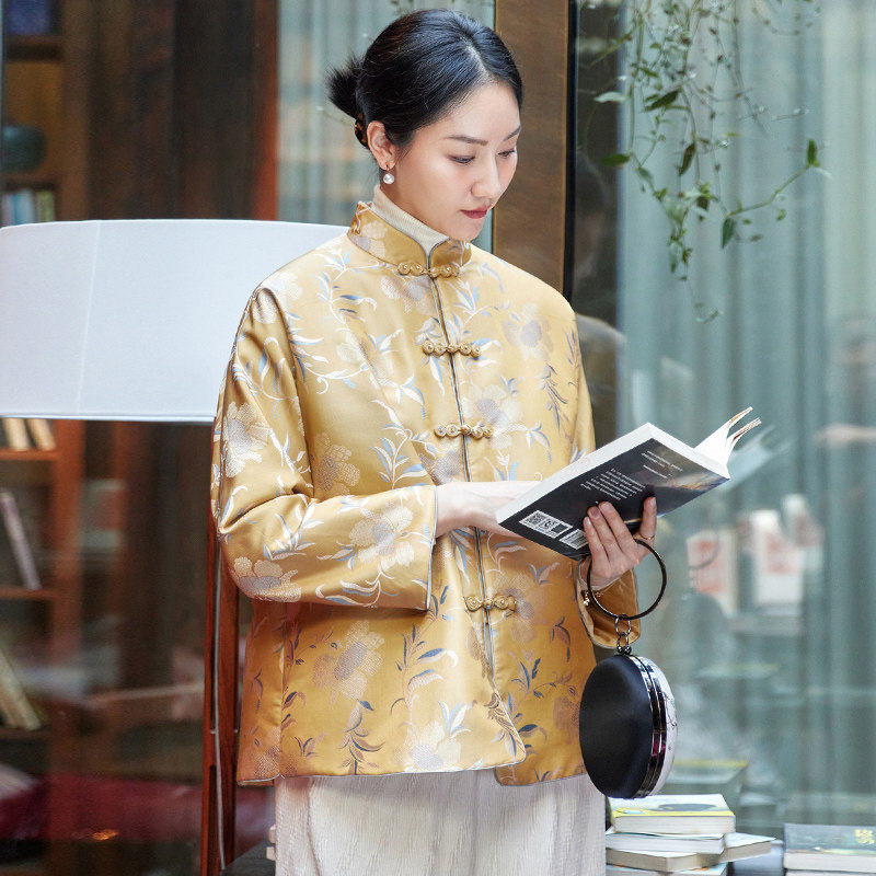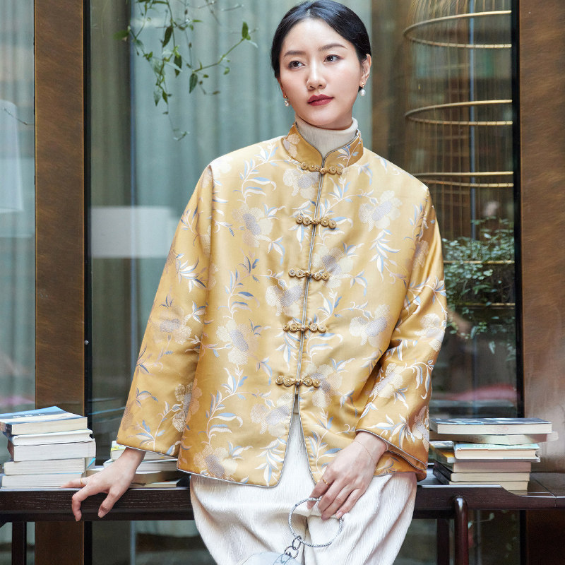 True Silk Song Chinjin Jacquard Winter Cotton Clothes Girl Blouse Winter New Chinese Art Retro Style Retro Refined Tang Dress Clip Cotton Jacket Woman-Taobao