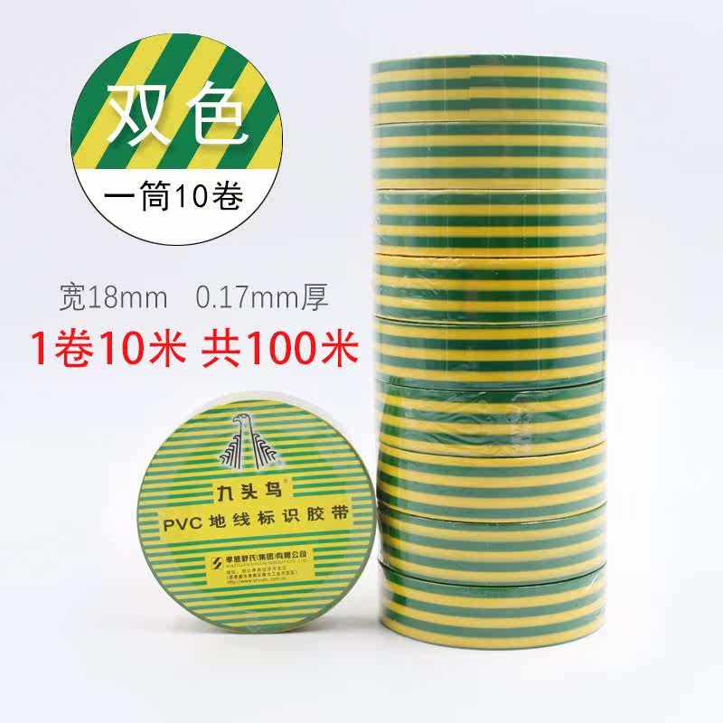 Nine-headed bird PVC ground wire logo adhesive tape 10 m yellow-green bicolor waterproof edge rice rubberized rubberized rubber-coated electrical glue 20 m-Taobao