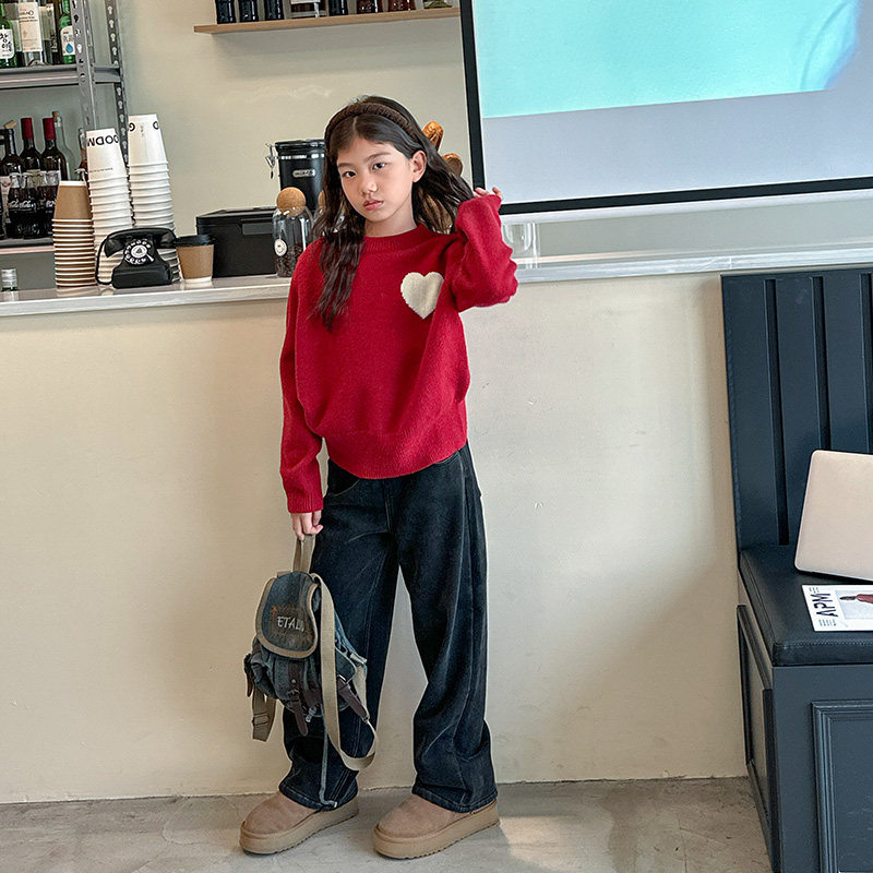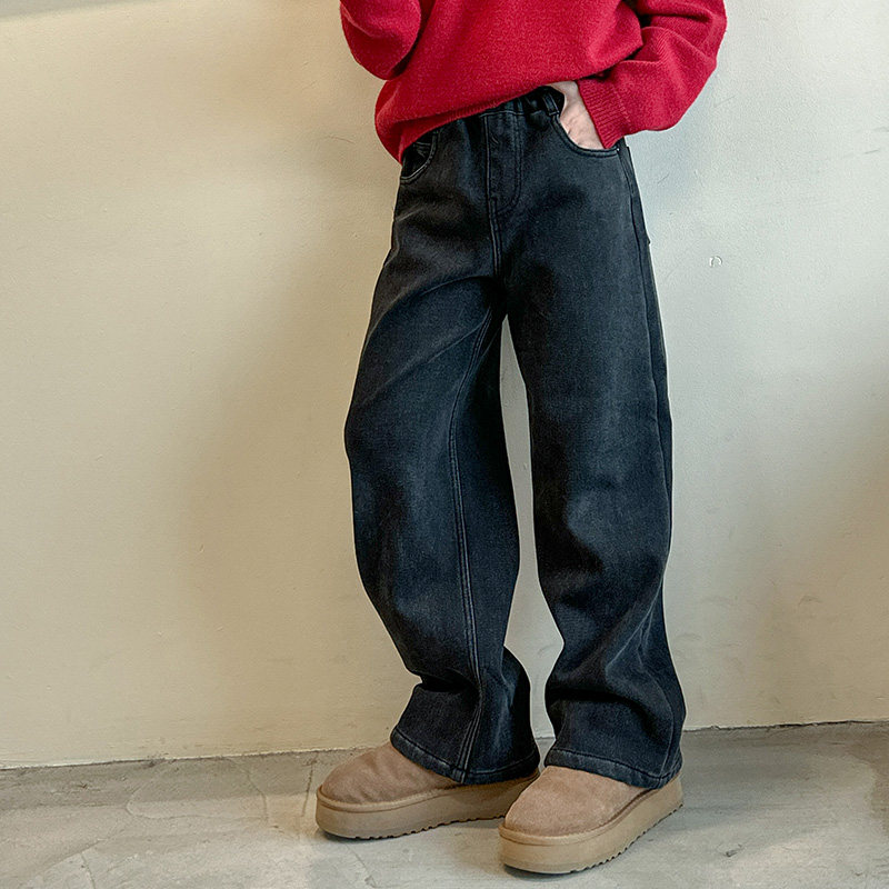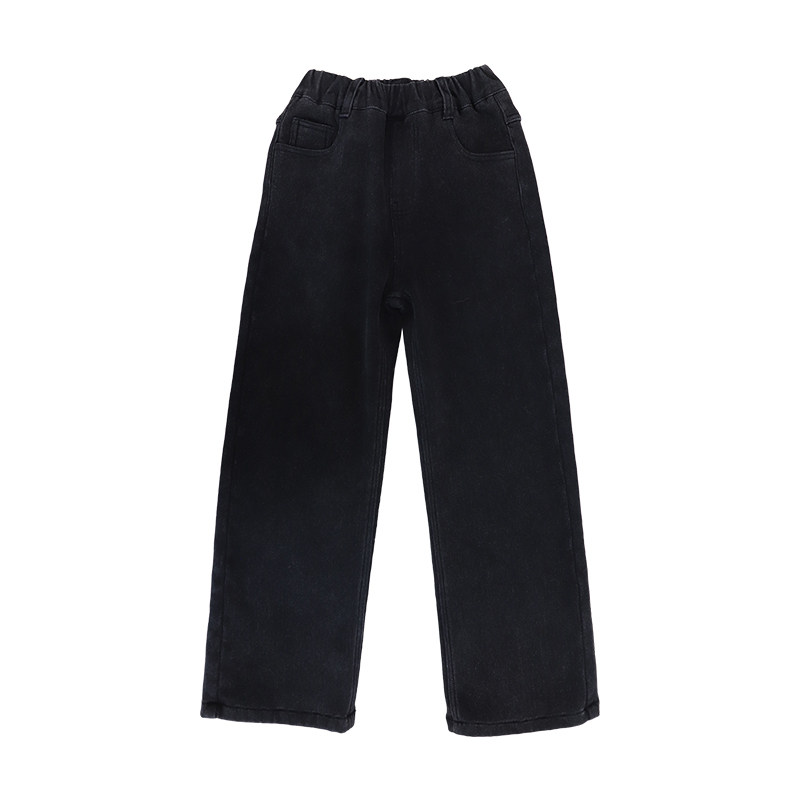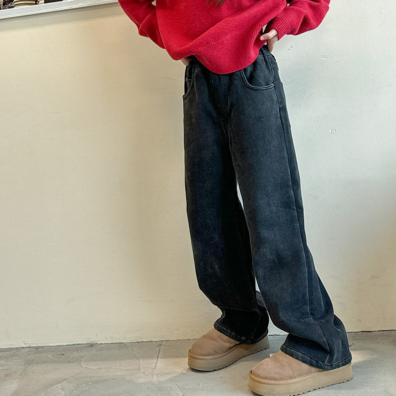 Girl Jeans Gapped Thickened 2023 Winter New CUHK Child Loose Straight Drum Integrated Suede Pants Tide-Taobao